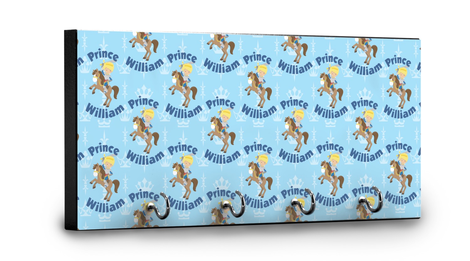This is the perfect custom / personalized prince design for any young boy. We have created a layered pattern, where the first background is a simple tone on tone crowns pattern. We then layered it with our curved custom text and graphic, where we used "Prince" and "William" as the text and we used a graphic of a prince on horse.