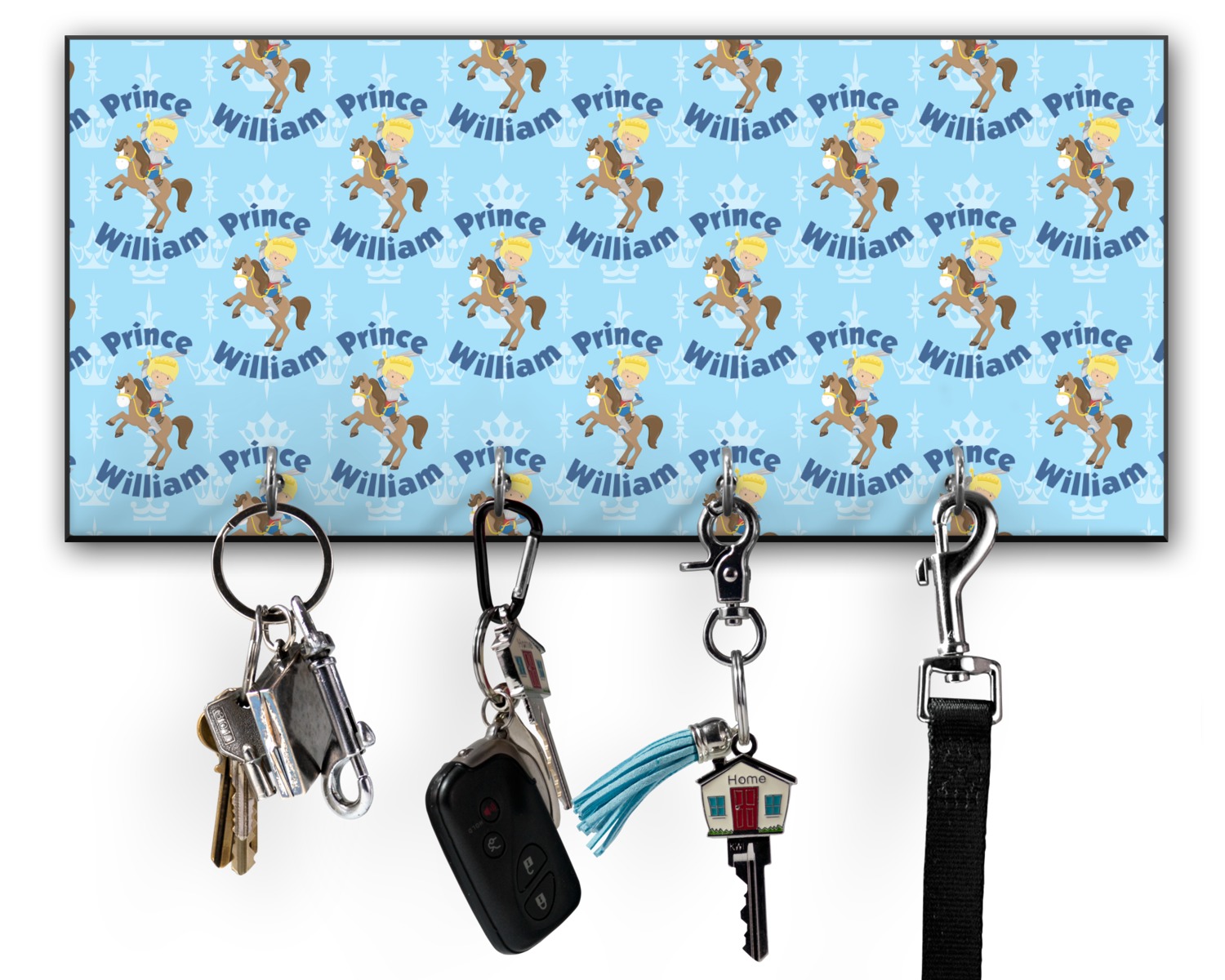 This 11" x 5" key hanger is made of sturdy wood and has four metal hooks lining the bottom. This is the perfect size for a family with several drivers. Not only can you hang keys on it though, but pet leashes and other small items. The board is black on the sides and back and is printed with the design of your choice on the front.