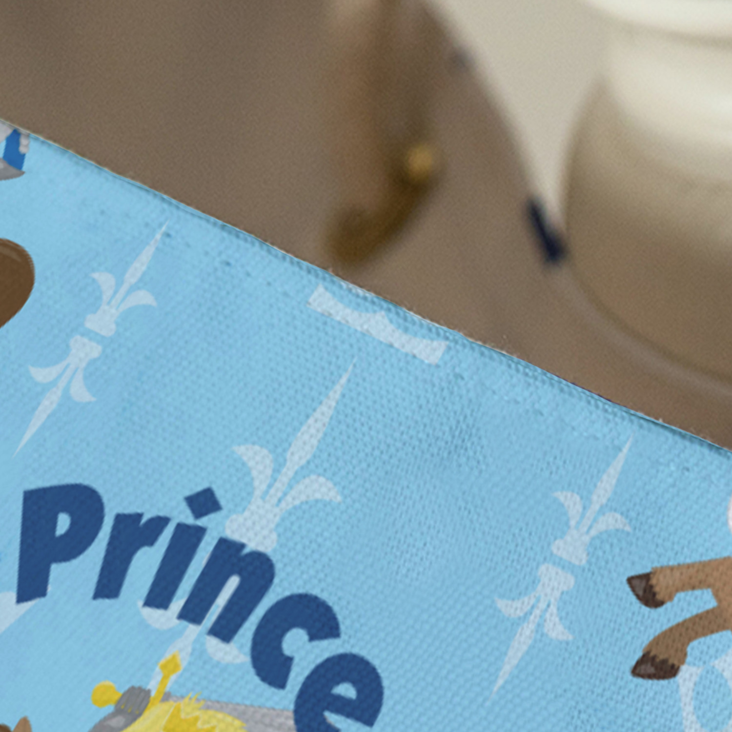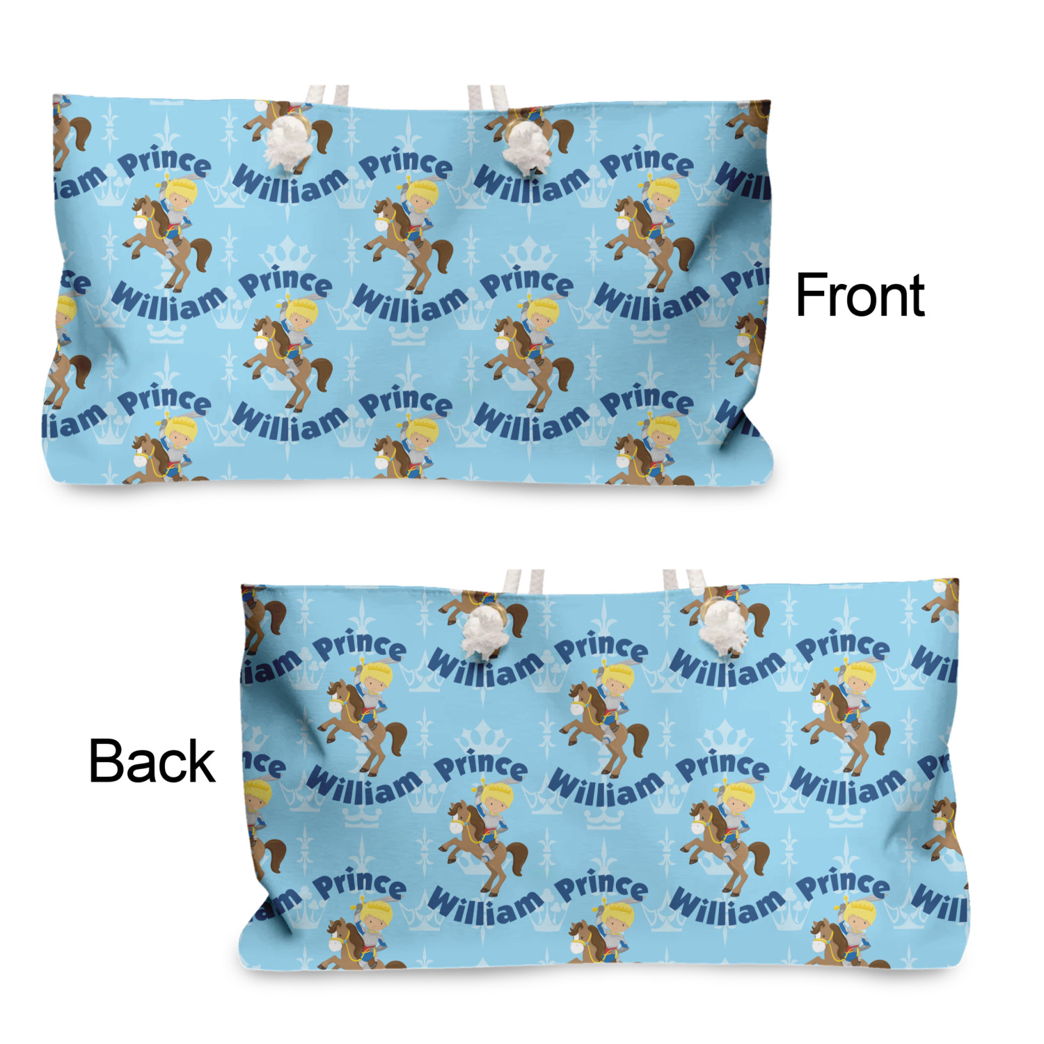 This is the perfect custom / personalized prince design for any young boy. We have created a layered pattern, where the first background is a simple tone on tone crowns pattern. We then layered it with our curved custom text and graphic, where we used "Prince" and "William" as the text and we used a graphic of a prince on horse.
