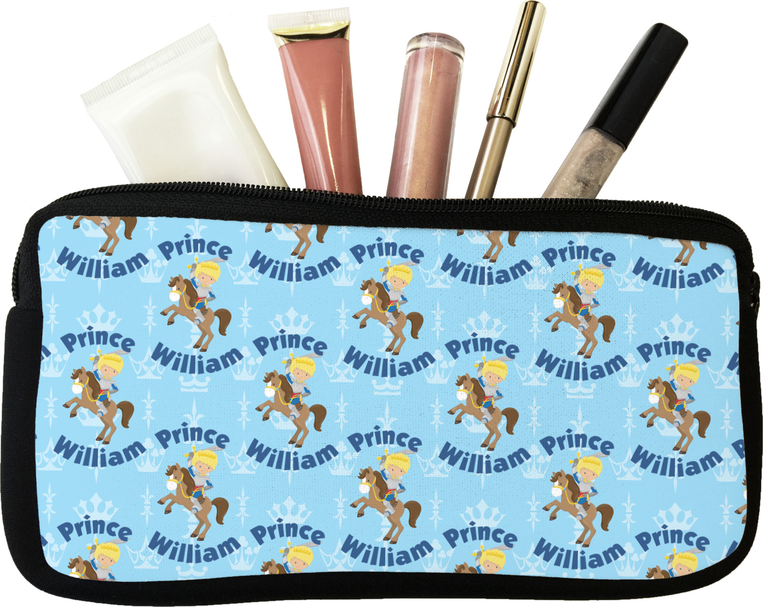 Our personalized makeup bags are available in many different designs, patterns and colors - so you are sure to find one that will love. They are made of neoprene (same material as wet-suits) and thus are water resistant, so spillages in your makeup bag will not end up all over you purse. They are customized on one side and are black on the other side and the zipper is black as well.