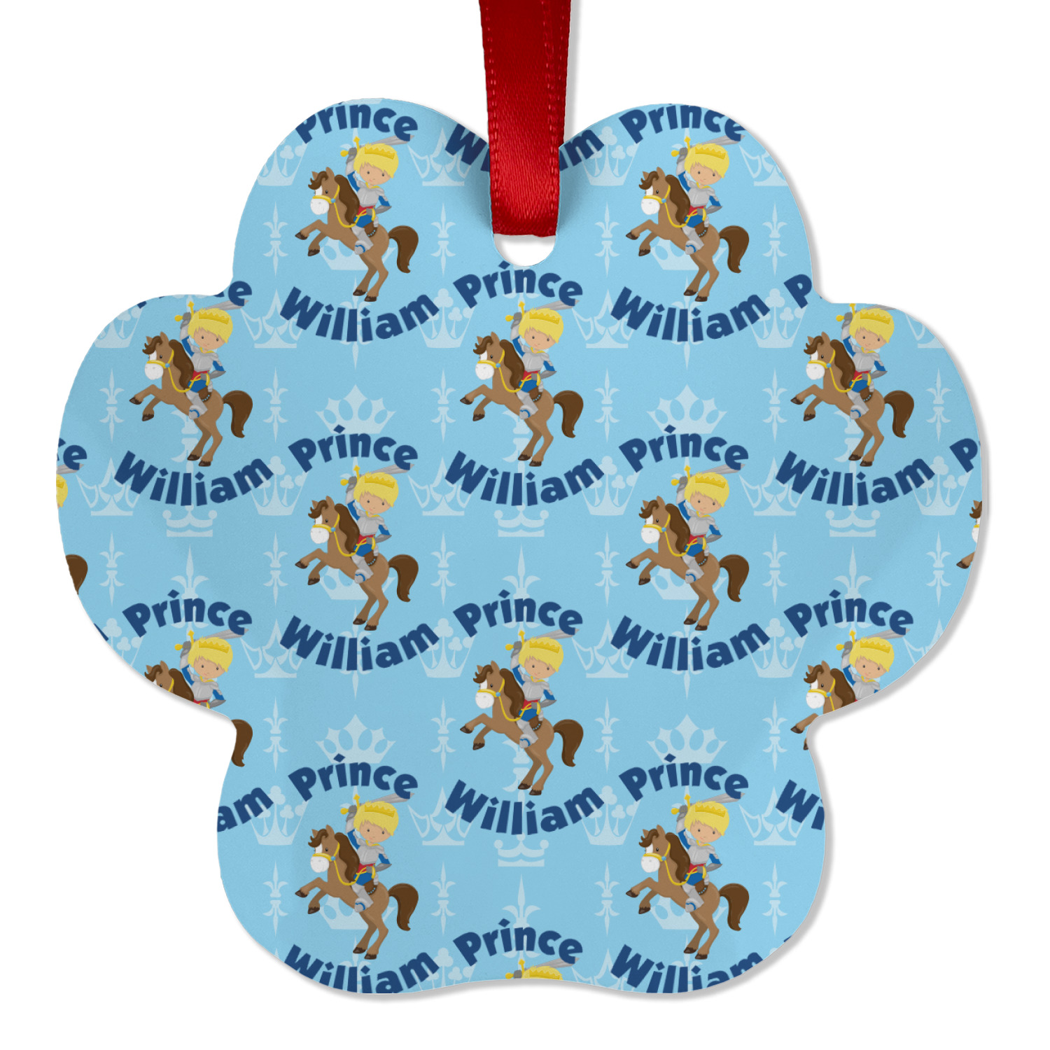 This is the perfect custom / personalized prince design for any young boy. We have created a layered pattern, where the first background is a simple tone on tone crowns pattern. We then layered it with our curved custom text and graphic, where we used "Prince" and "William" as the text and we used a graphic of a prince on horse.