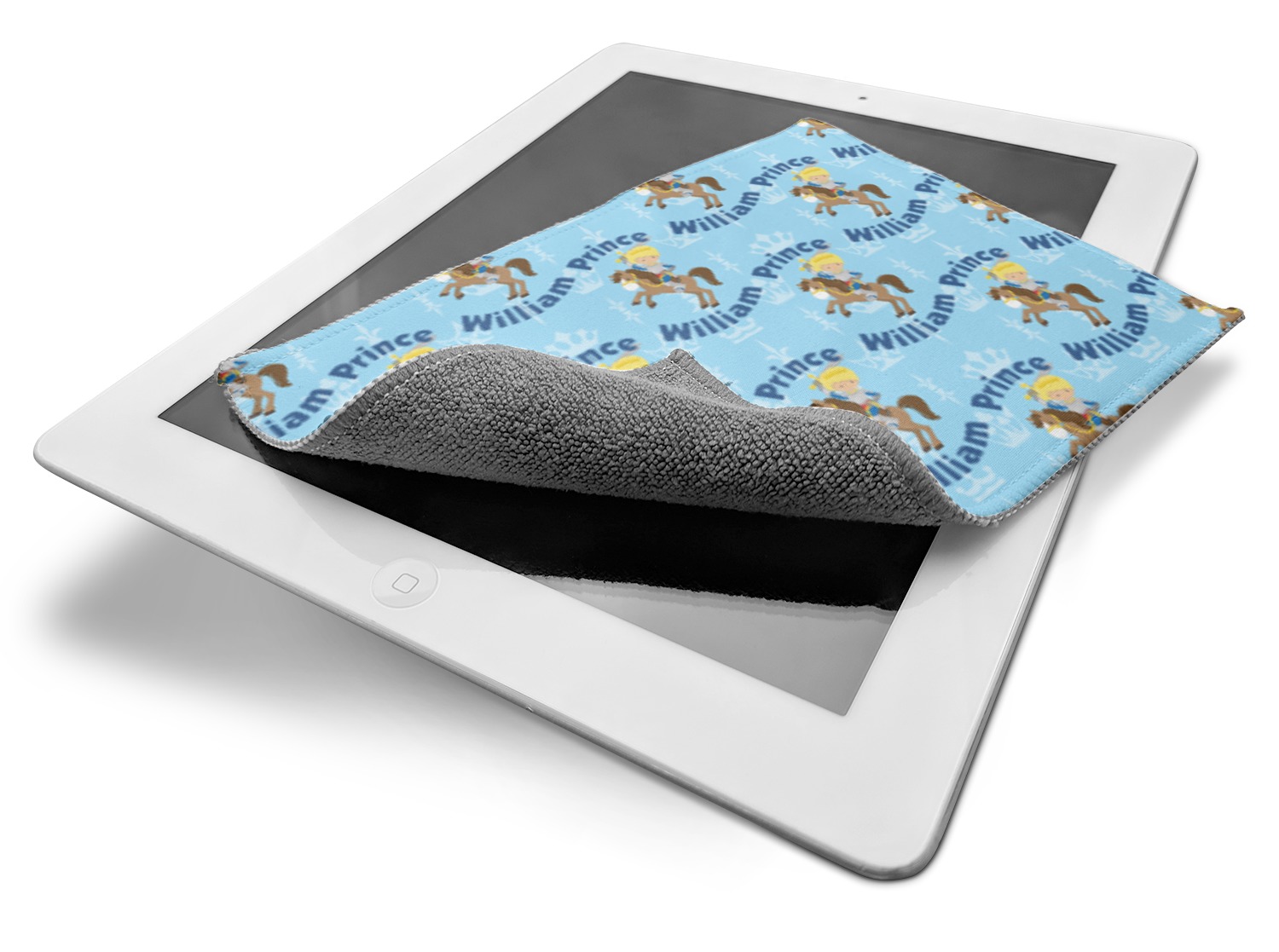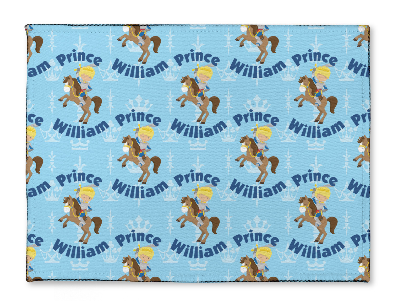 This is the perfect custom / personalized prince design for any young boy. We have created a layered pattern, where the first background is a simple tone on tone crowns pattern. We then layered it with our curved custom text and graphic, where we used "Prince" and "William" as the text and we used a graphic of a prince on horse.