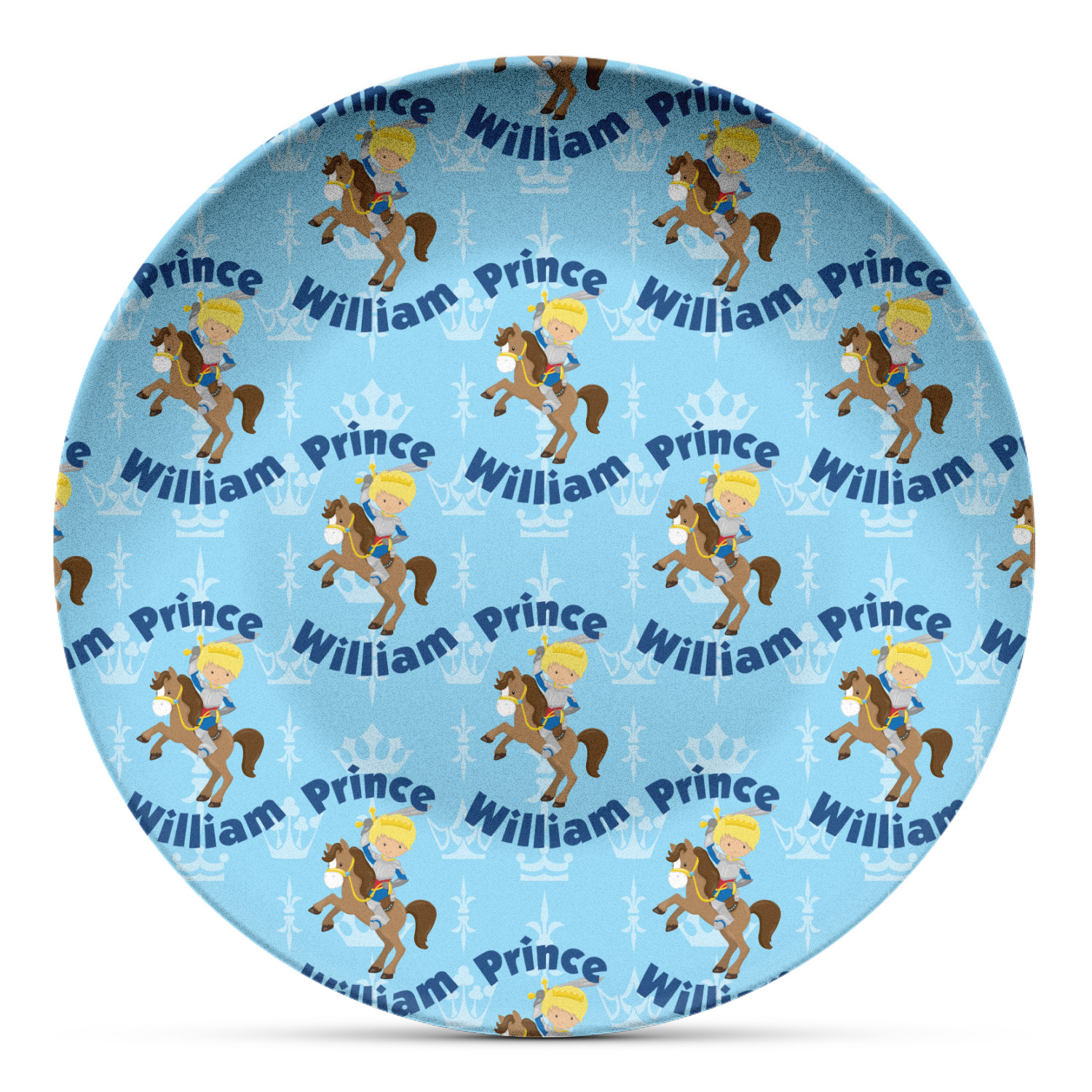 This is the perfect custom / personalized prince design for any young boy. We have created a layered pattern, where the first background is a simple tone on tone crowns pattern. We then layered it with our curved custom text and graphic, where we used "Prince" and "William" as the text and we used a graphic of a prince on horse.