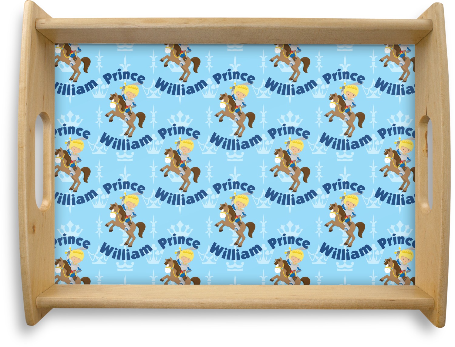 This is the perfect custom / personalized prince design for any young boy. We have created a layered pattern, where the first background is a simple tone on tone crowns pattern. We then layered it with our curved custom text and graphic, where we used "Prince" and "William" as the text and we used a graphic of a prince on horse.