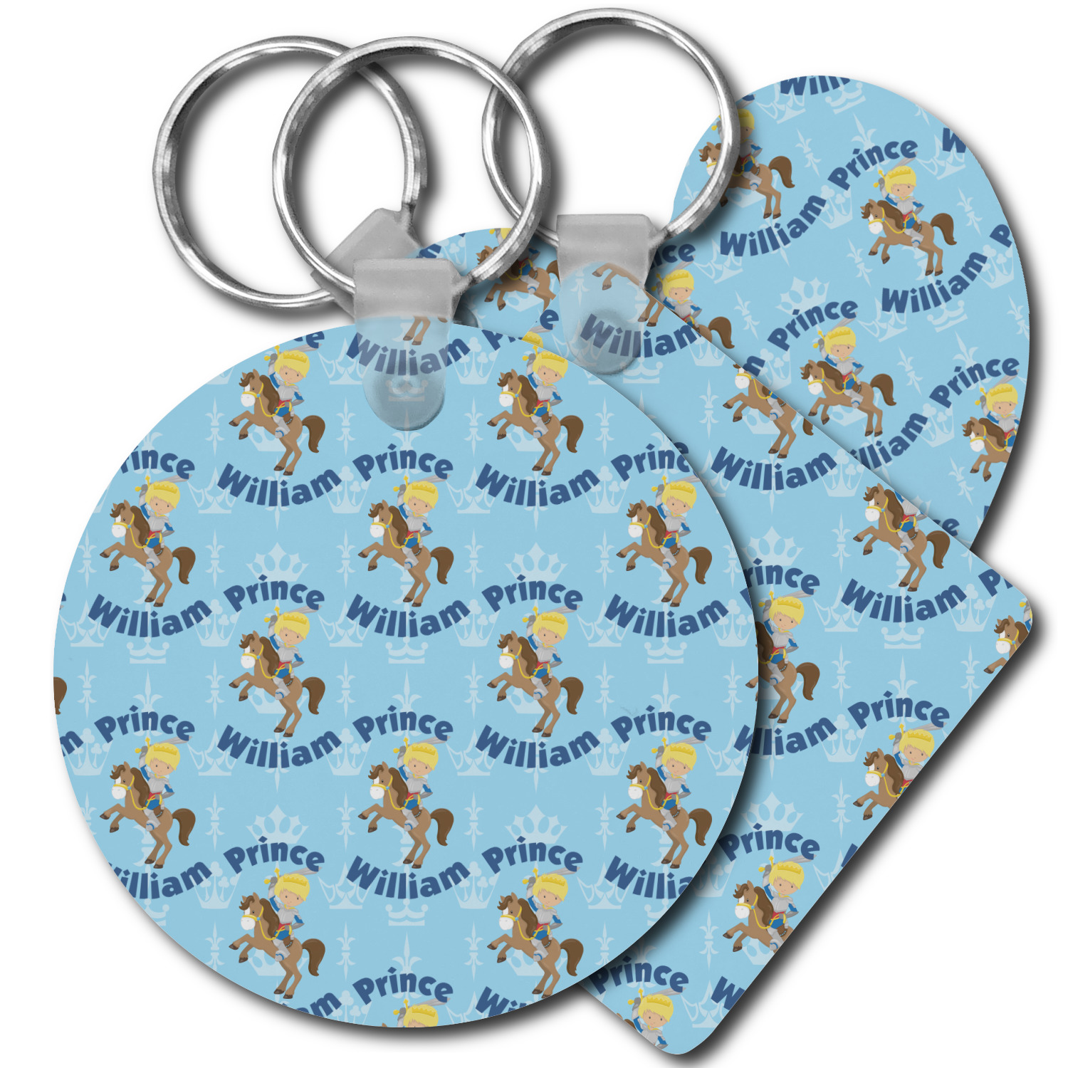 This is the perfect custom / personalized prince design for any young boy. We have created a layered pattern, where the first background is a simple tone on tone crowns pattern. We then layered it with our curved custom text and graphic, where we used "Prince" and "William" as the text and we used a graphic of a prince on horse.