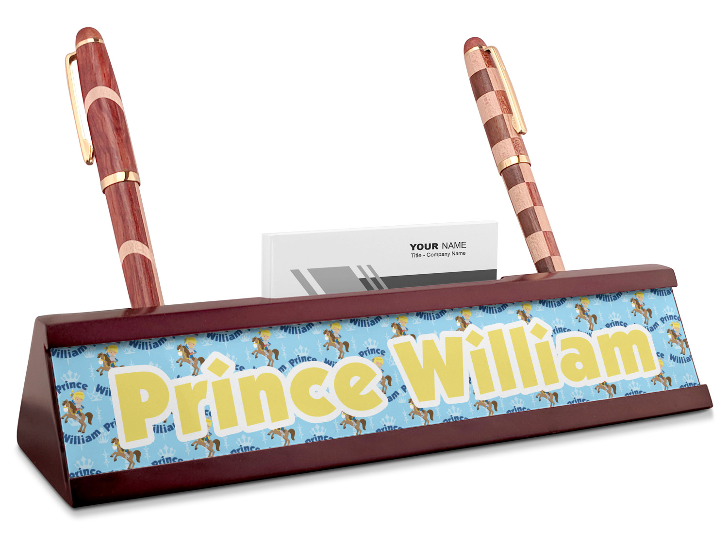 This is the perfect custom / personalized prince design for any young boy. We have created a layered pattern, where the first background is a simple tone on tone crowns pattern. We then layered it with our curved custom text and graphic, where we used "Prince" and "William" as the text and we used a graphic of a prince on horse.