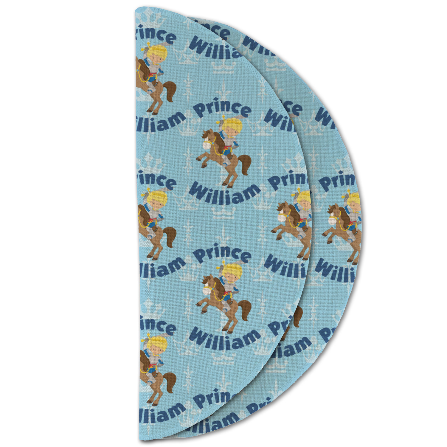 This is the perfect custom / personalized prince design for any young boy. We have created a layered pattern, where the first background is a simple tone on tone crowns pattern. We then layered it with our curved custom text and graphic, where we used "Prince" and "William" as the text and we used a graphic of a prince on horse.
