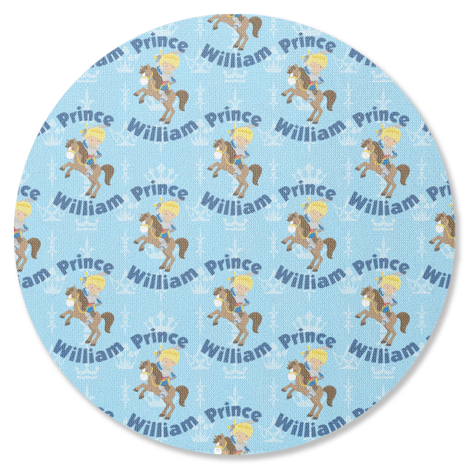 This is the perfect custom / personalized prince design for any young boy. We have created a layered pattern, where the first background is a simple tone on tone crowns pattern. We then layered it with our curved custom text and graphic, where we used "Prince" and "William" as the text and we used a graphic of a prince on horse.