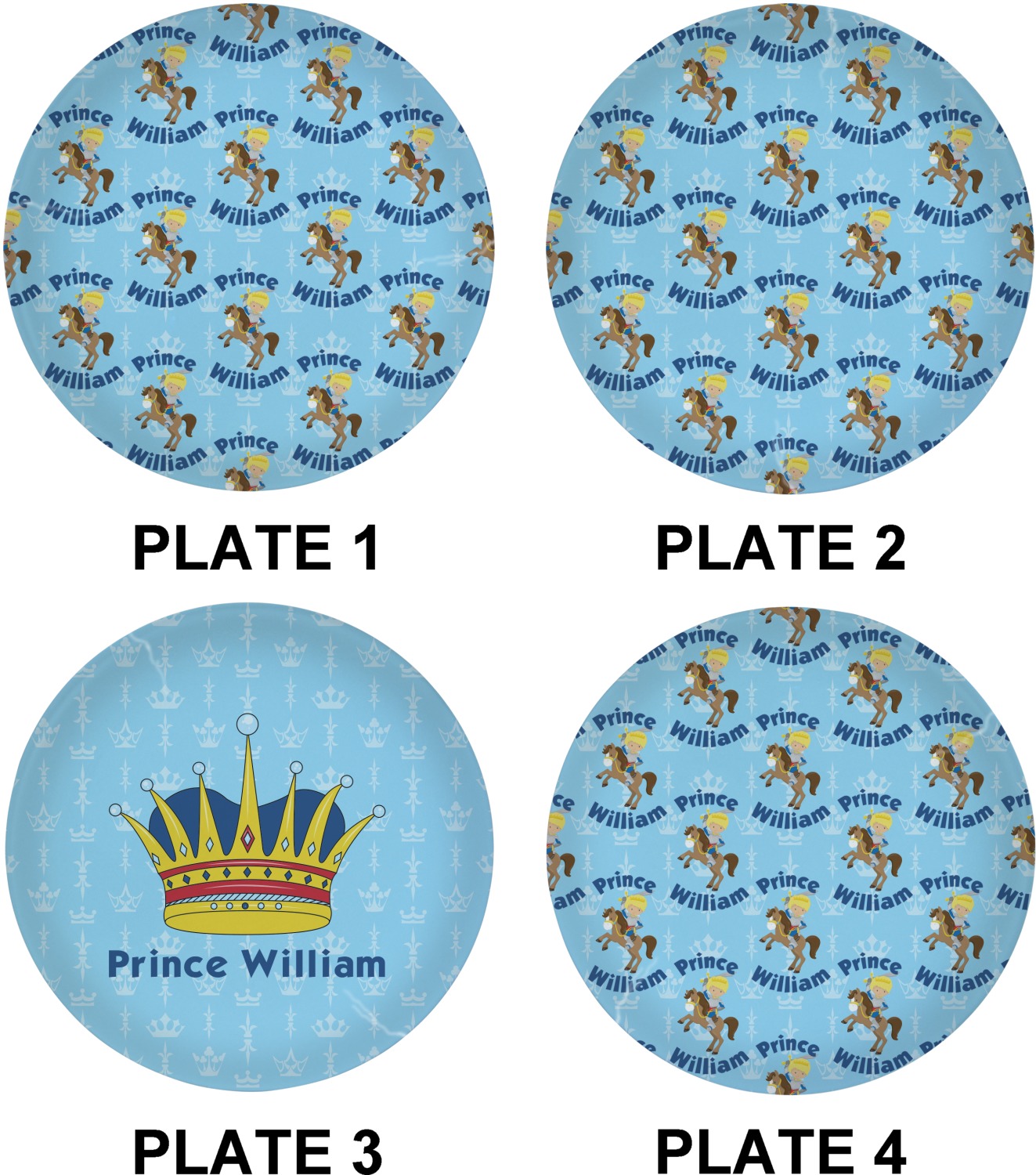 This is the perfect custom / personalized prince design for any young boy. We have created a layered pattern, where the first background is a simple tone on tone crowns pattern. We then layered it with our curved custom text and graphic, where we used "Prince" and "William" as the text and we used a graphic of a prince on horse.