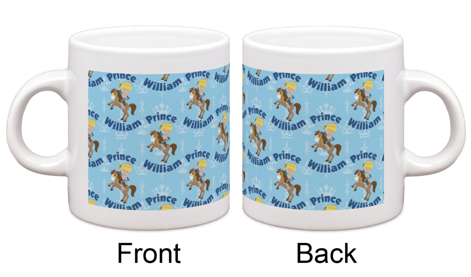 This is the perfect custom / personalized prince design for any young boy. We have created a layered pattern, where the first background is a simple tone on tone crowns pattern. We then layered it with our curved custom text and graphic, where we used "Prince" and "William" as the text and we used a graphic of a prince on horse.