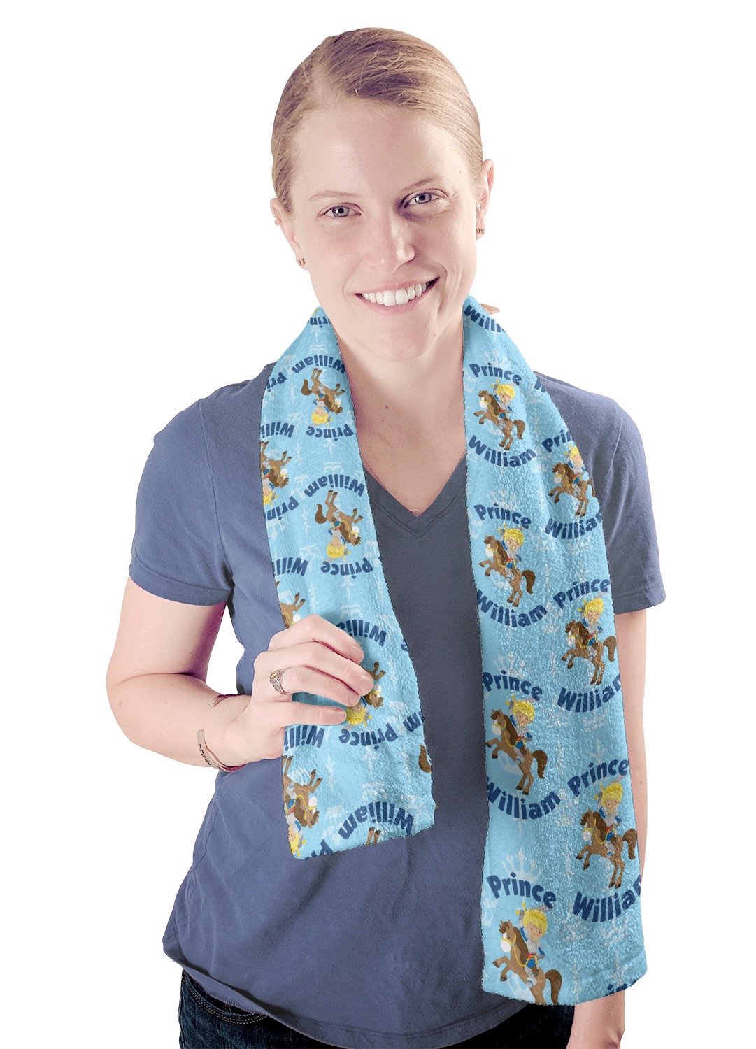 This is the perfect custom / personalized prince design for any young boy. We have created a layered pattern, where the first background is a simple tone on tone crowns pattern. We then layered it with our curved custom text and graphic, where we used "Prince" and "William" as the text and we used a graphic of a prince on horse.