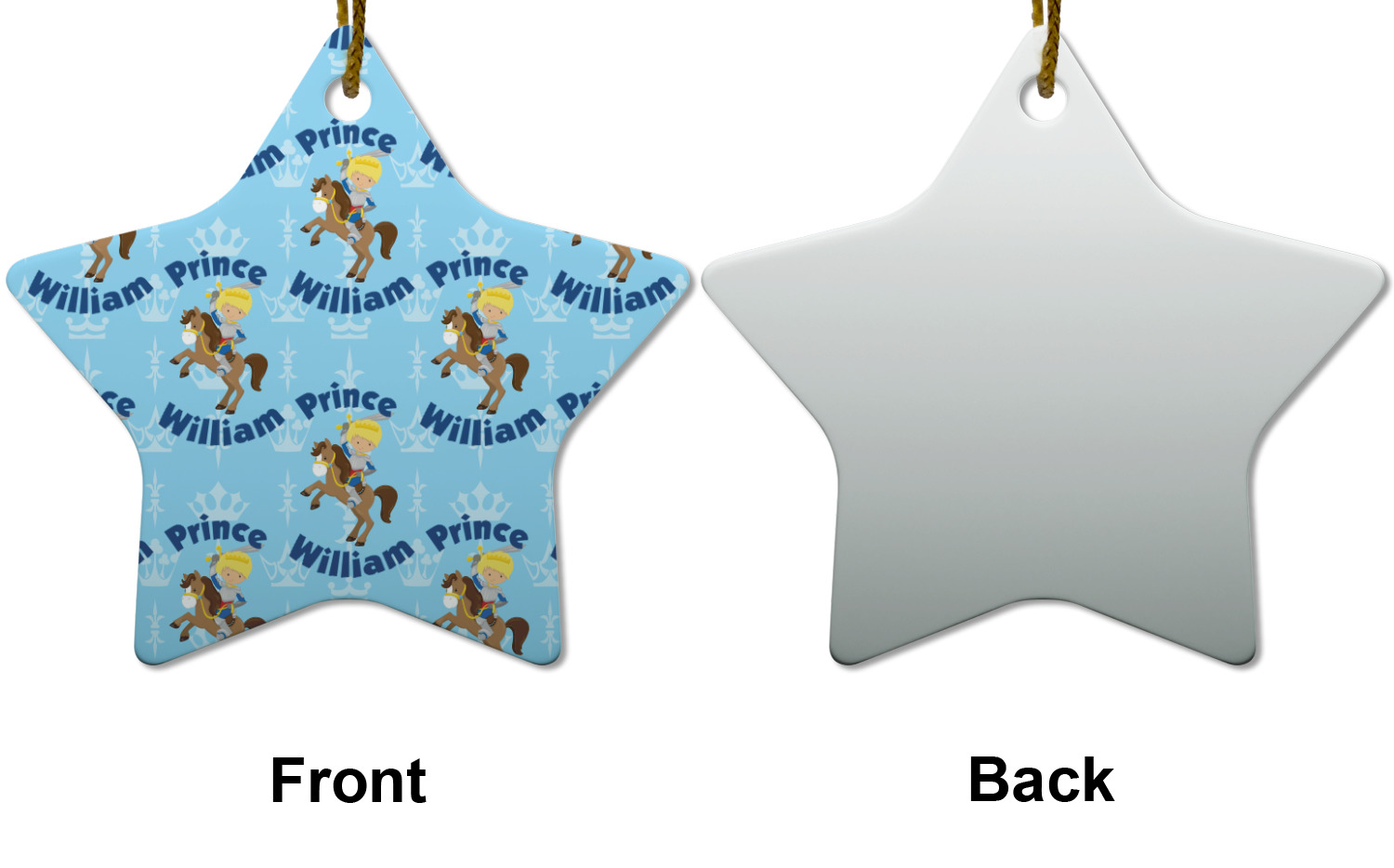 This is the perfect custom / personalized prince design for any young boy. We have created a layered pattern, where the first background is a simple tone on tone crowns pattern. We then layered it with our curved custom text and graphic, where we used "Prince" and "William" as the text and we used a graphic of a prince on horse.