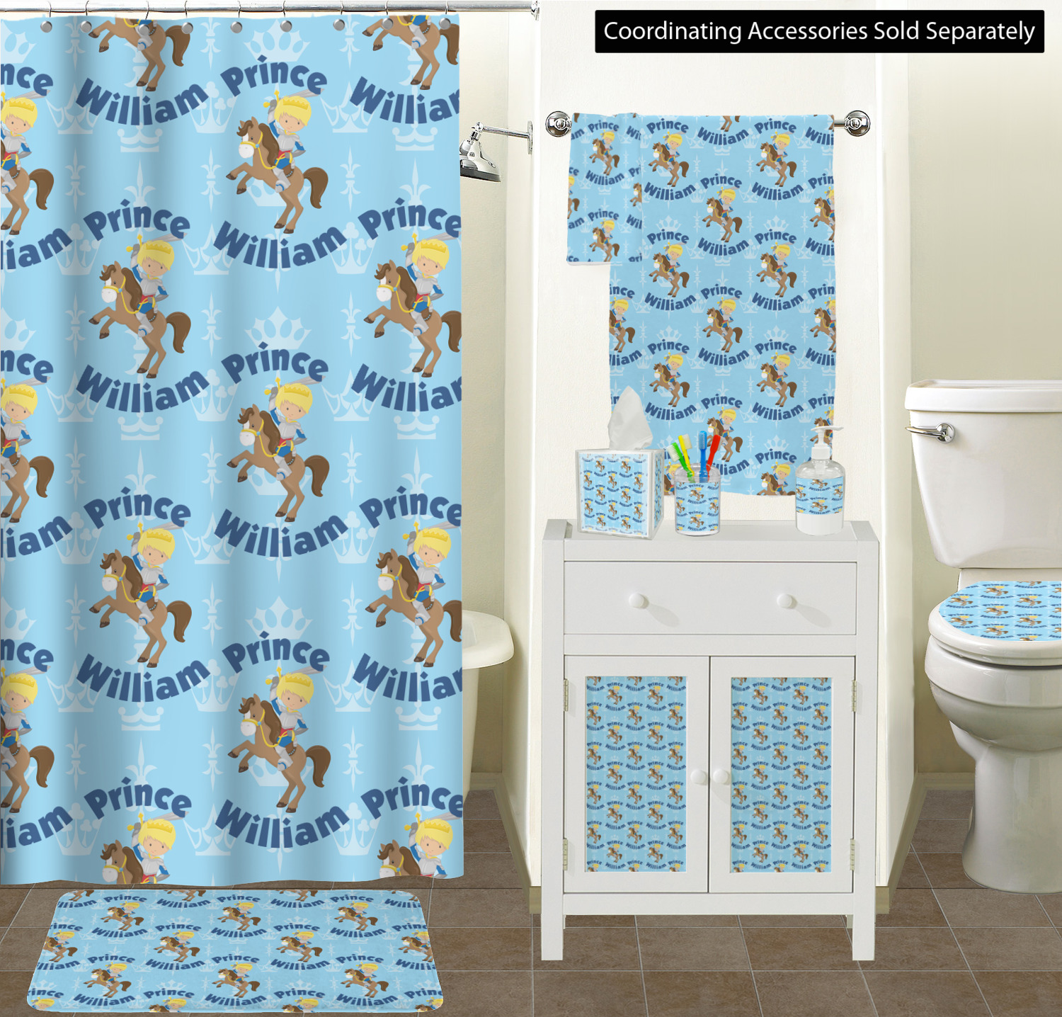 This is the perfect custom / personalized prince design for any young boy. We have created a layered pattern, where the first background is a simple tone on tone crowns pattern. We then layered it with our curved custom text and graphic, where we used "Prince" and "William" as the text and we used a graphic of a prince on horse.