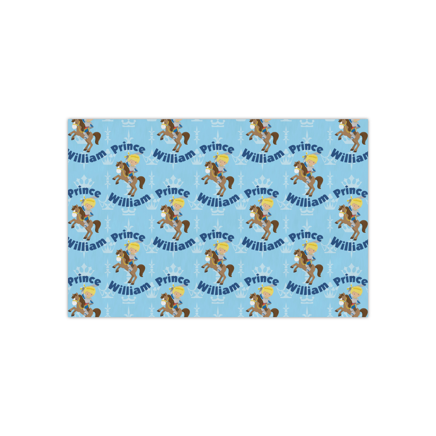 This is the perfect custom / personalized prince design for any young boy. We have created a layered pattern, where the first background is a simple tone on tone crowns pattern. We then layered it with our curved custom text and graphic, where we used "Prince" and "William" as the text and we used a graphic of a prince on horse.