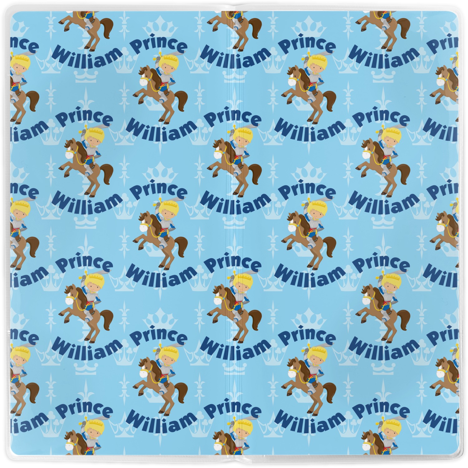 This is the perfect custom / personalized prince design for any young boy. We have created a layered pattern, where the first background is a simple tone on tone crowns pattern. We then layered it with our curved custom text and graphic, where we used "Prince" and "William" as the text and we used a graphic of a prince on horse.