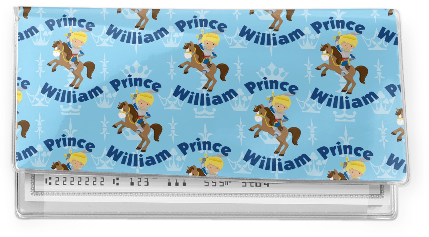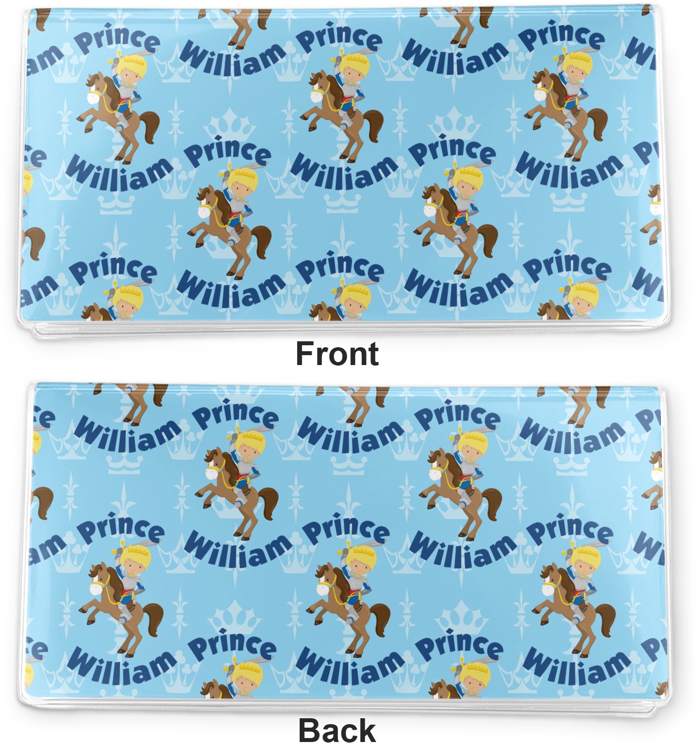 This is the perfect custom / personalized prince design for any young boy. We have created a layered pattern, where the first background is a simple tone on tone crowns pattern. We then layered it with our curved custom text and graphic, where we used "Prince" and "William" as the text and we used a graphic of a prince on horse.
