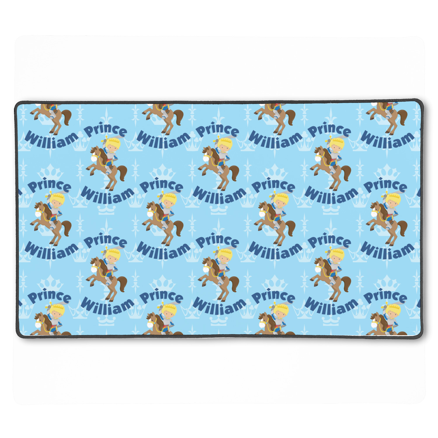 This is the perfect custom / personalized prince design for any young boy. We have created a layered pattern, where the first background is a simple tone on tone crowns pattern. We then layered it with our curved custom text and graphic, where we used "Prince" and "William" as the text and we used a graphic of a prince on horse.