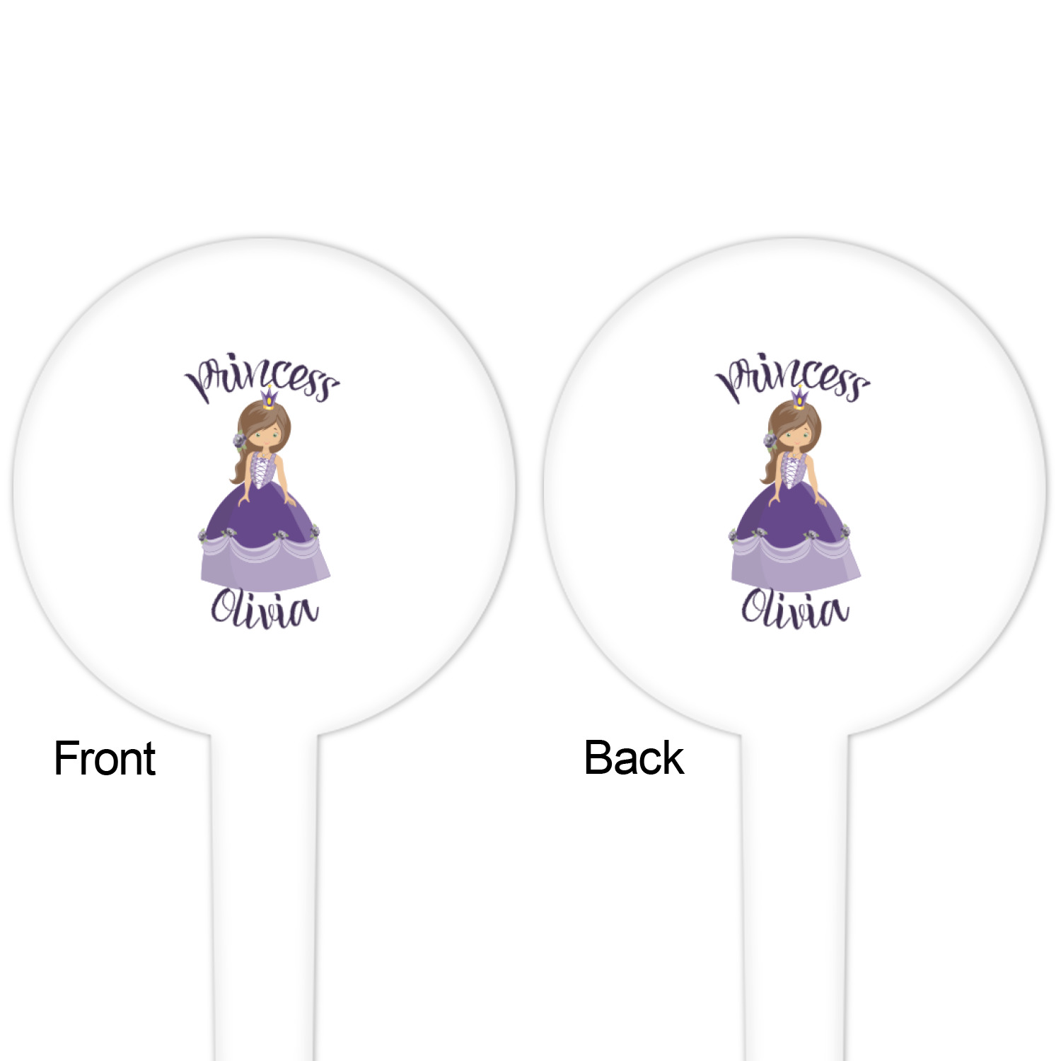 The round disc on these food & drink picks can be customized and personalized to your specifications. Your image will be printed in full color on one side or both sides. You can use the same image on both sides or use two different images.