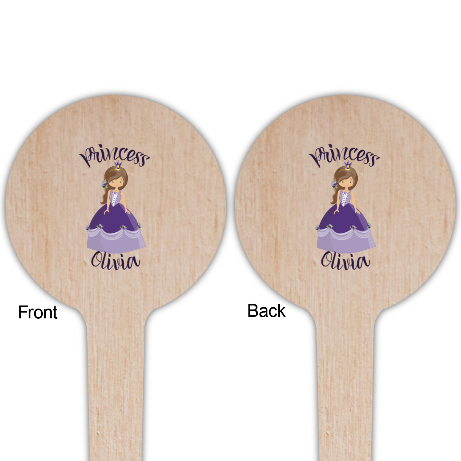 This is truly custom personalized design. You can customize almost all aspects of the design. You can customize the top and bottom text, along with the font and color. The princess' hair color, skin color, eye and even her crown and dress color can be customized. We also have a number of other princesses in our system, so you can always change out the princess. The background pattern and color customizable.