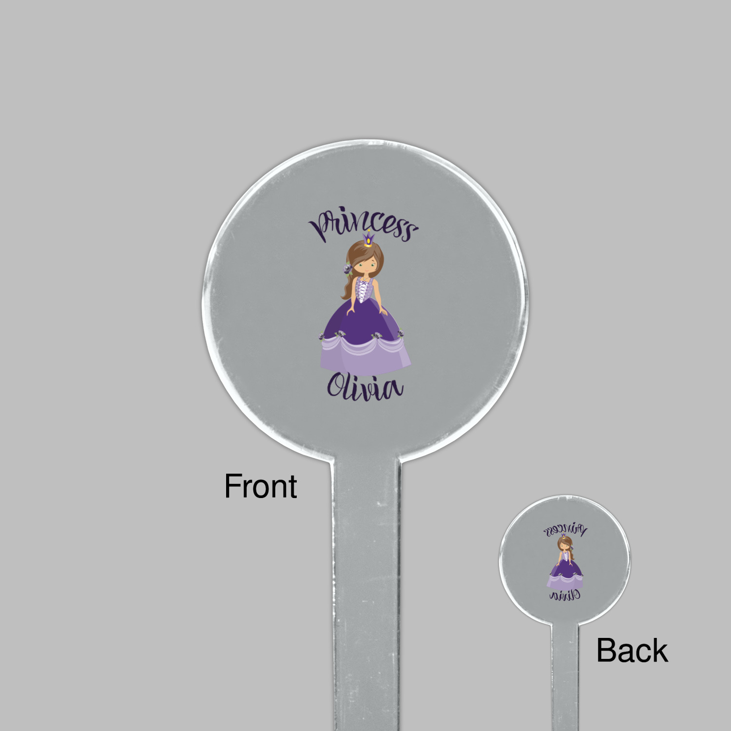 This is truly custom personalized design. You can customize almost all aspects of the design. You can customize the top and bottom text, along with the font and color. The princess' hair color, skin color, eye and even her crown and dress color can be customized. We also have a number of other princesses in our system, so you can always change out the princess. The background pattern and color customizable.