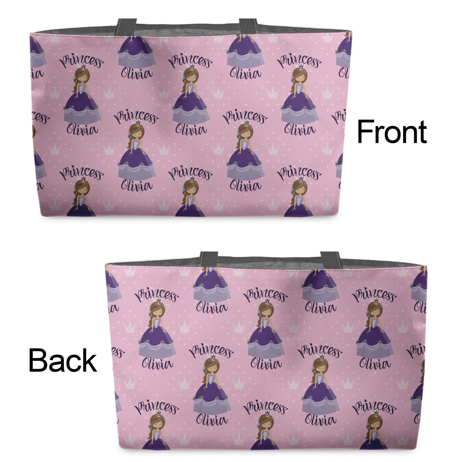 You can design the totes with a design on the front and another one on the back. The two designs can be identical or completely different. The choice is yours.