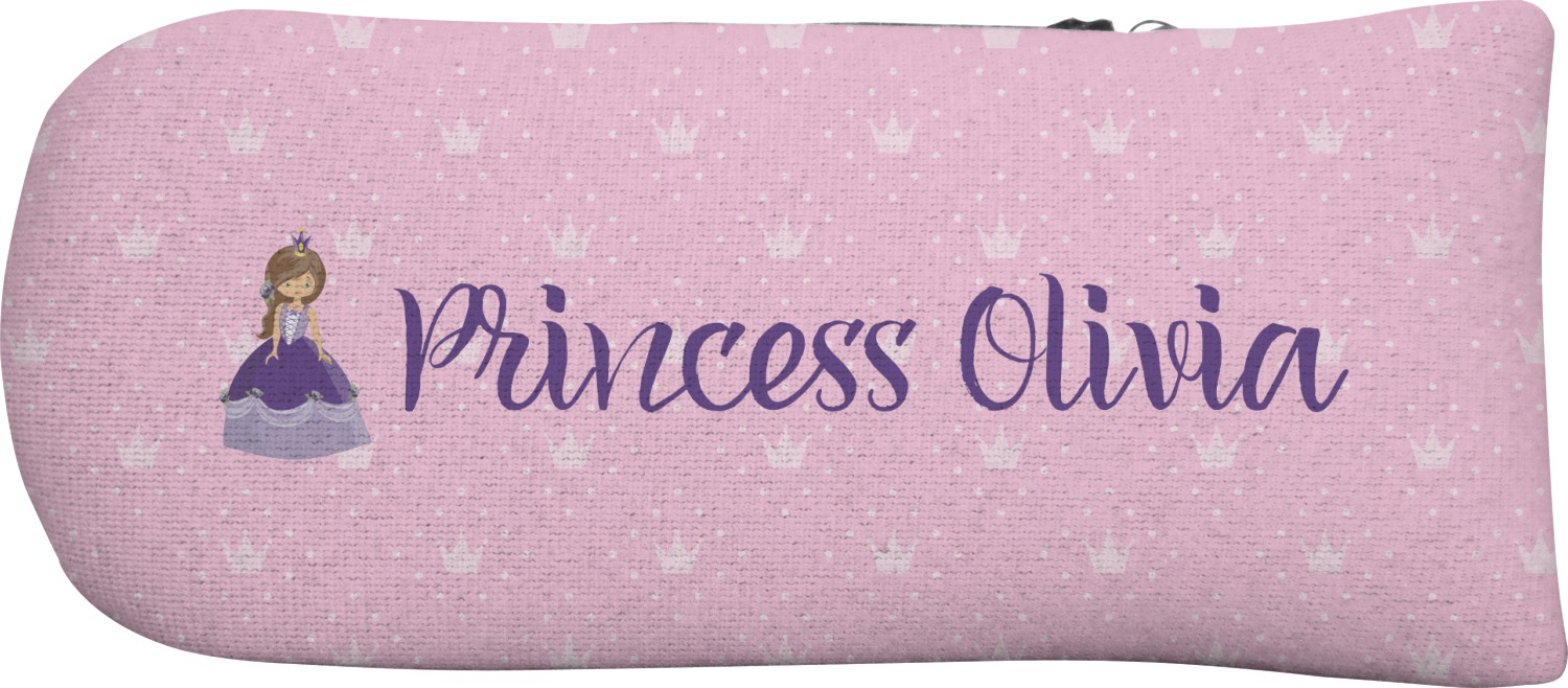 This is truly custom personalized design. You can customize almost all aspects of the design. You can customize the top and bottom text, along with the font and color. The princess' hair color, skin color, eye and even her crown and dress color can be customized. We also have a number of other princesses in our system, so you can always change out the princess. The background pattern and color customizable.