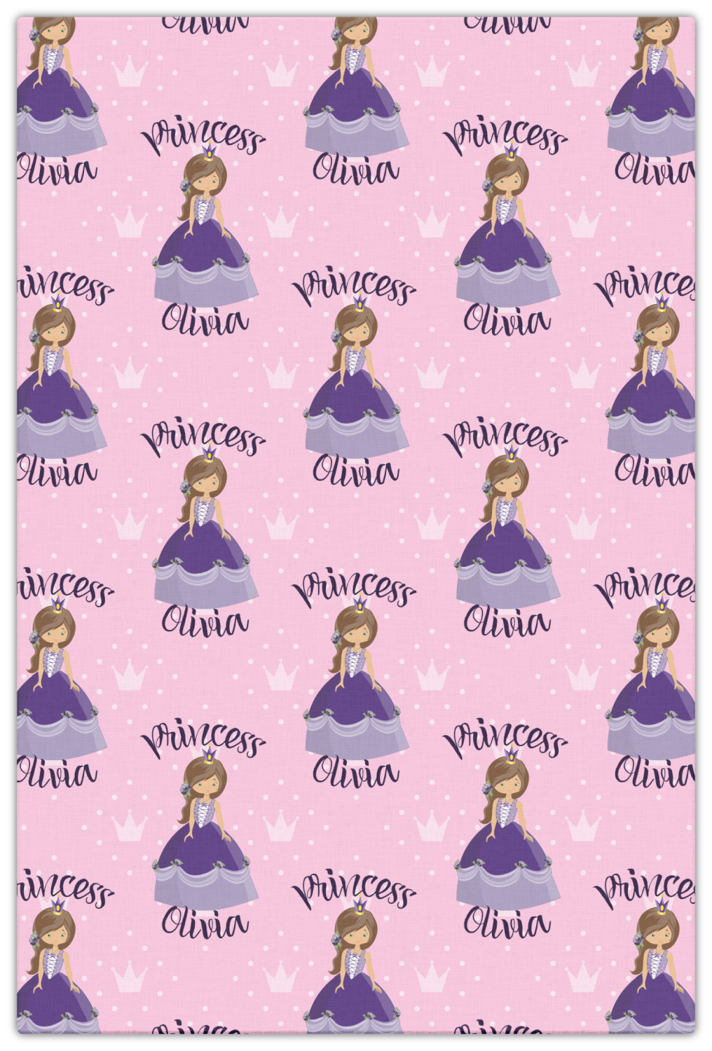 What a fantastic personalized princess design. We have created layered design using our simple crowns and dots design. We then layered it with a graphic of a princess along with the works princess on top and name below the graphic. This graphic, along with the text then form the repeat for the design.