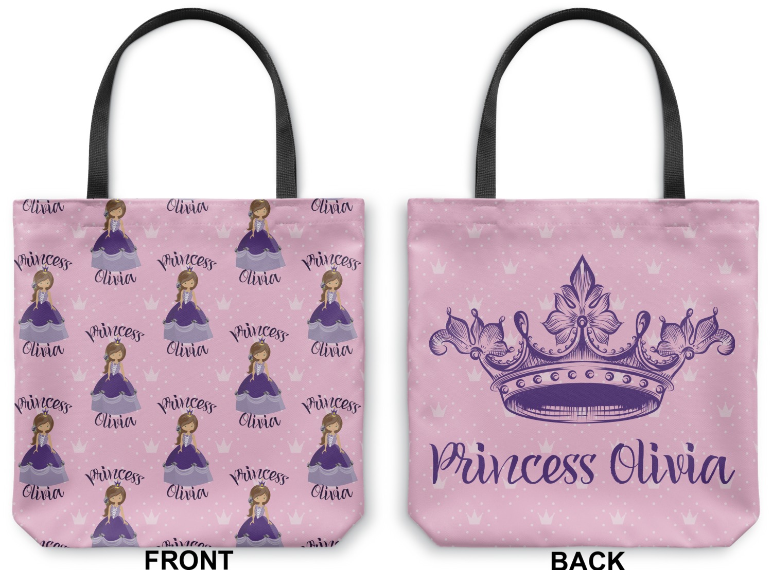 This is truly custom personalized design. You can customize almost all aspects of the design. You can customize the top and bottom text, along with the font and color. The princess' hair color, skin color, eye and even her crown and dress color can be customized. We also have a number of other princesses in our system, so you can always change out the princess. The background pattern and color customizable.