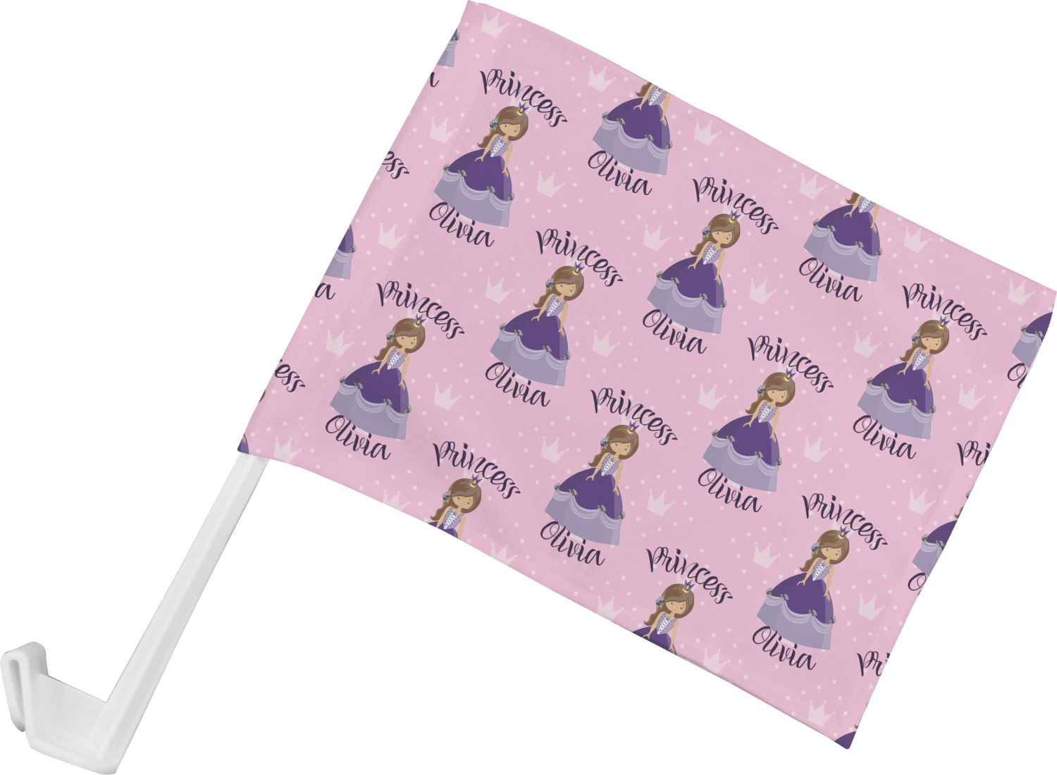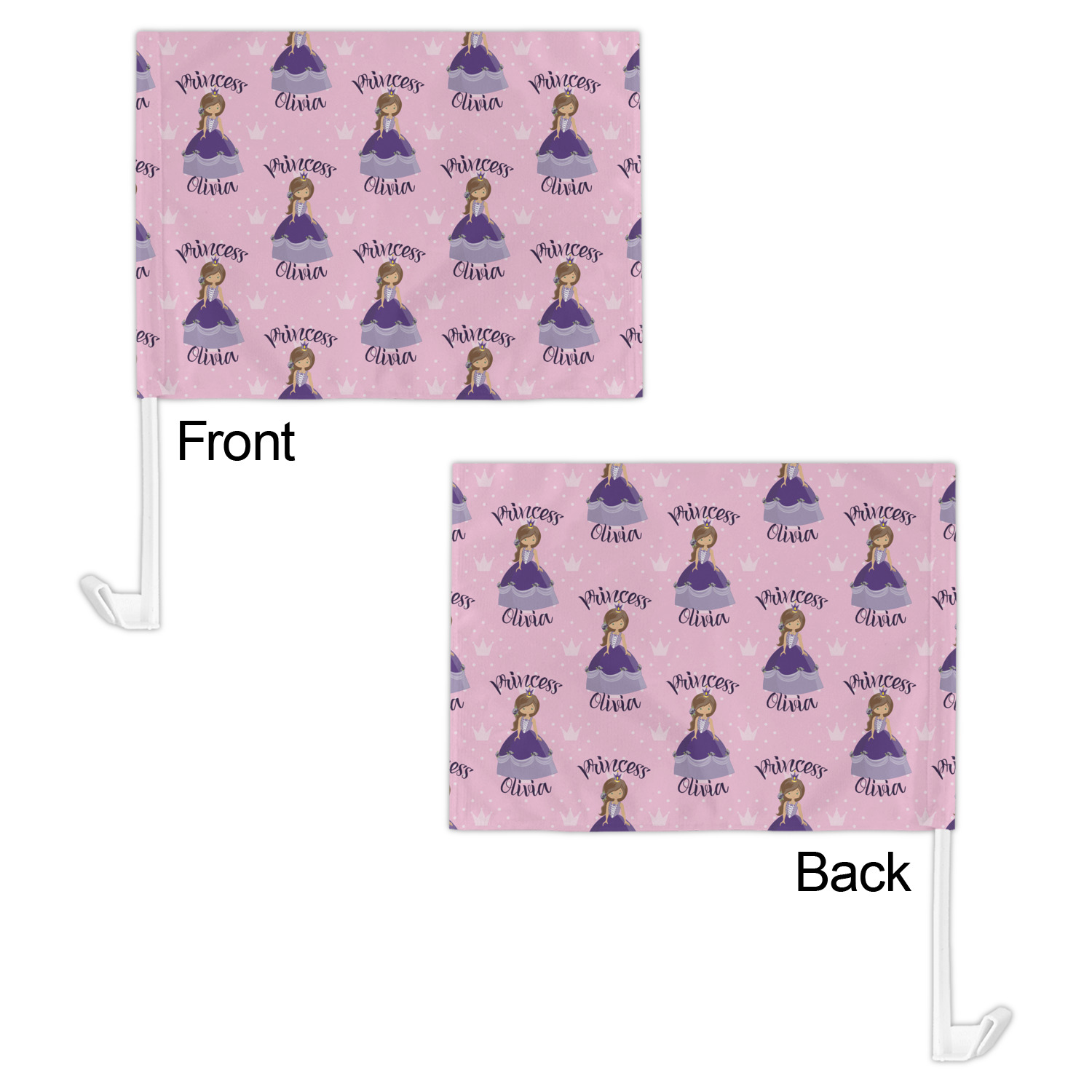 Our personalized flags are made from a durable, yet lightweight cloth that will proudly bear your logo or design of choice, while withstanding the outside elements. We have two size options - 8" x 11" and 11" x 15". Both come with a flag pole which includes a clip that secures the pole to the side window, whether it is rolled up or down. The flags are printed on both sides to display your design from all directions.