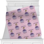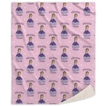 This is truly custom personalized design. You can customize almost all aspects of the design. You can customize the top and bottom text, along with the font and color. The princess' hair color, skin color, eye and even her crown and dress color can be customized. We also have a number of other princesses in our system, so you can always change out the princess. The background pattern and color customizable.