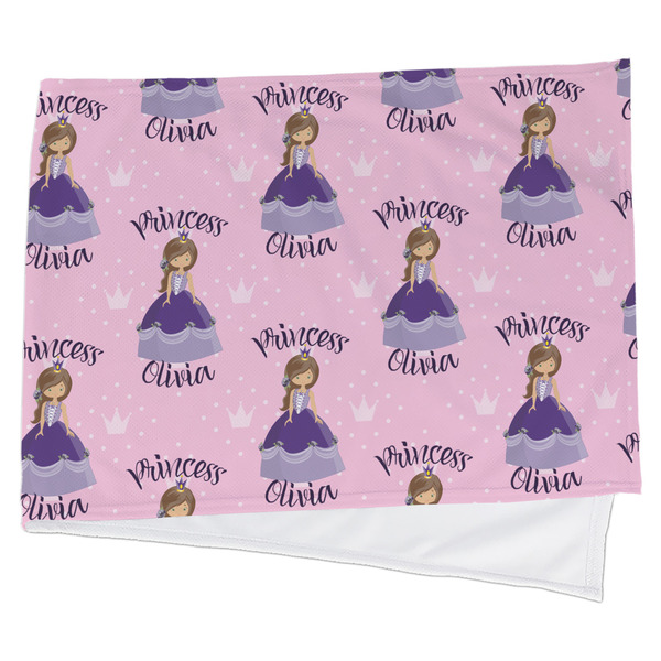 This is truly custom personalized design. You can customize almost all aspects of the design. You can customize the top and bottom text, along with the font and color. The princess' hair color, skin color, eye and even her crown and dress color can be customized. We also have a number of other princesses in our system, so you can always change out the princess. The background pattern and color customizable.