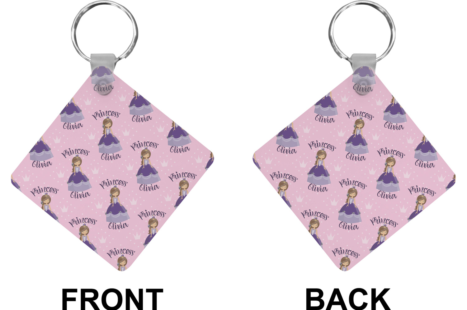 Our personalized keychains attach to the included metal, split key ring with a plastic, removable snap. Since a metal ring is included with your purchase, you have the liberty to keep your keys together on the ring, with or without your unique keychain. We offer this keychain in three different shapes: circle, heart, or diamond. We print your personalized design(s) on both sides of the key chain, and the surface has a glossy, reflective finish that only emphasizes your design. Each keychain is approximately 2.25 by 2.25 inches.