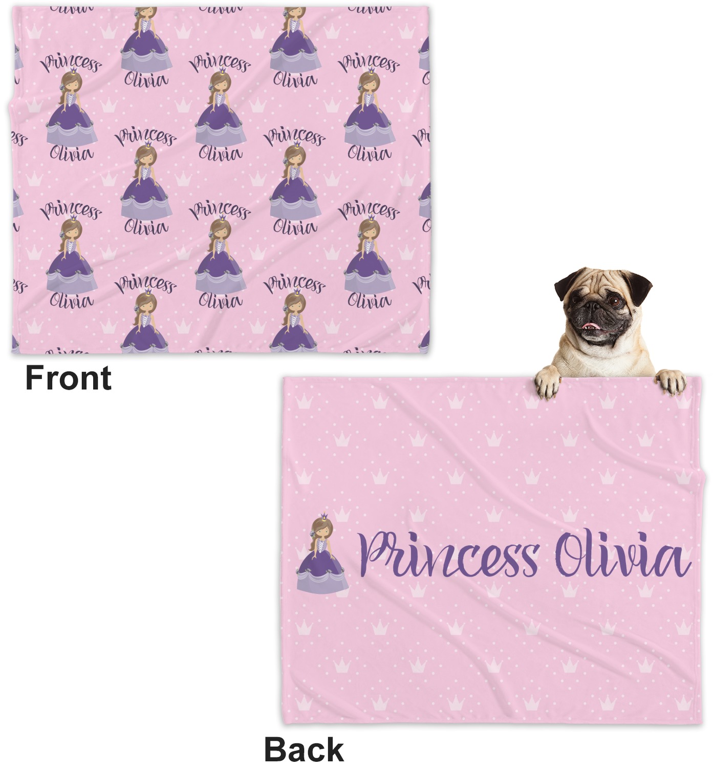 These dog blankets are crafted from a gentle, soft-to-the-touch, minky material. We print your customizations, either matching or differing, on both the top and underside of the blanket. These personalized dog blankets are available in two sizes: regular and large. Our regular size, at 40" x 30", accommodates small and some medium size dogs. At 60" x 50", our large dog blanket is a better fit for bigger breeds. Though specialized for dogs, these blankets still make a thoughtful gift for your favorite feline, or any other pet in mind!