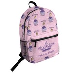 This is truly custom personalized design. You can customize almost all aspects of the design. You can customize the top and bottom text, along with the font and color. The princess' hair color, skin color, eye and even her crown and dress color can be customized. We also have a number of other princesses in our system, so you can always change out the princess. The background pattern and color customizable.