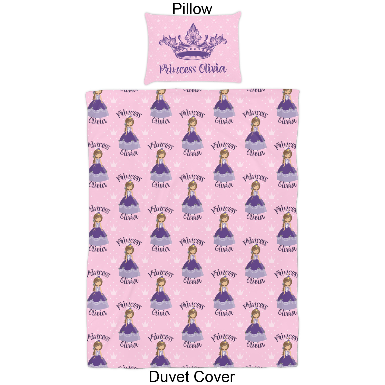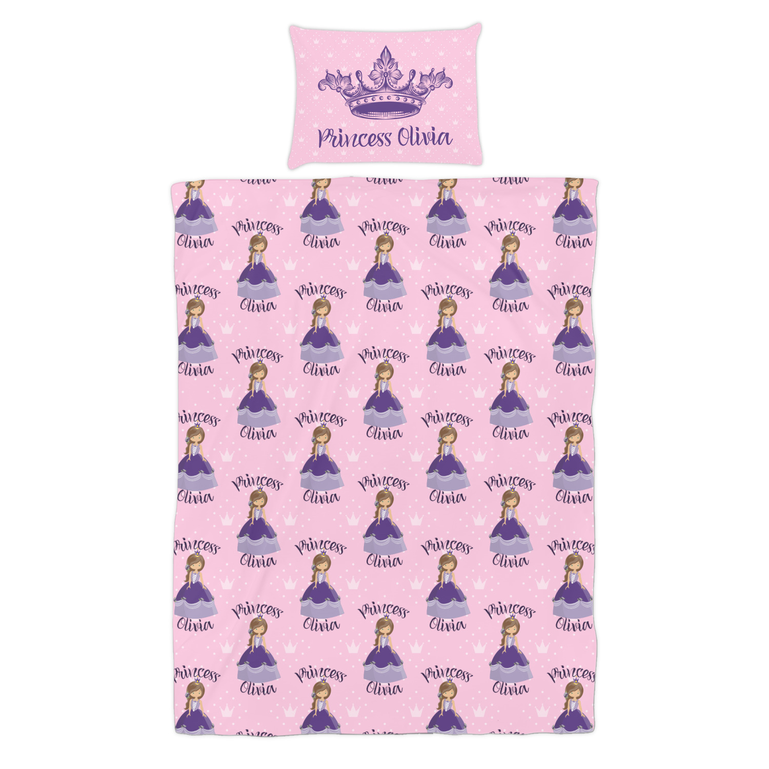What a fantastic personalized princess design. We have created layered design using our simple crowns and dots design. We then layered it with a graphic of a princess along with the works princess on top and name below the graphic. This graphic, along with the text then form the repeat for the design.