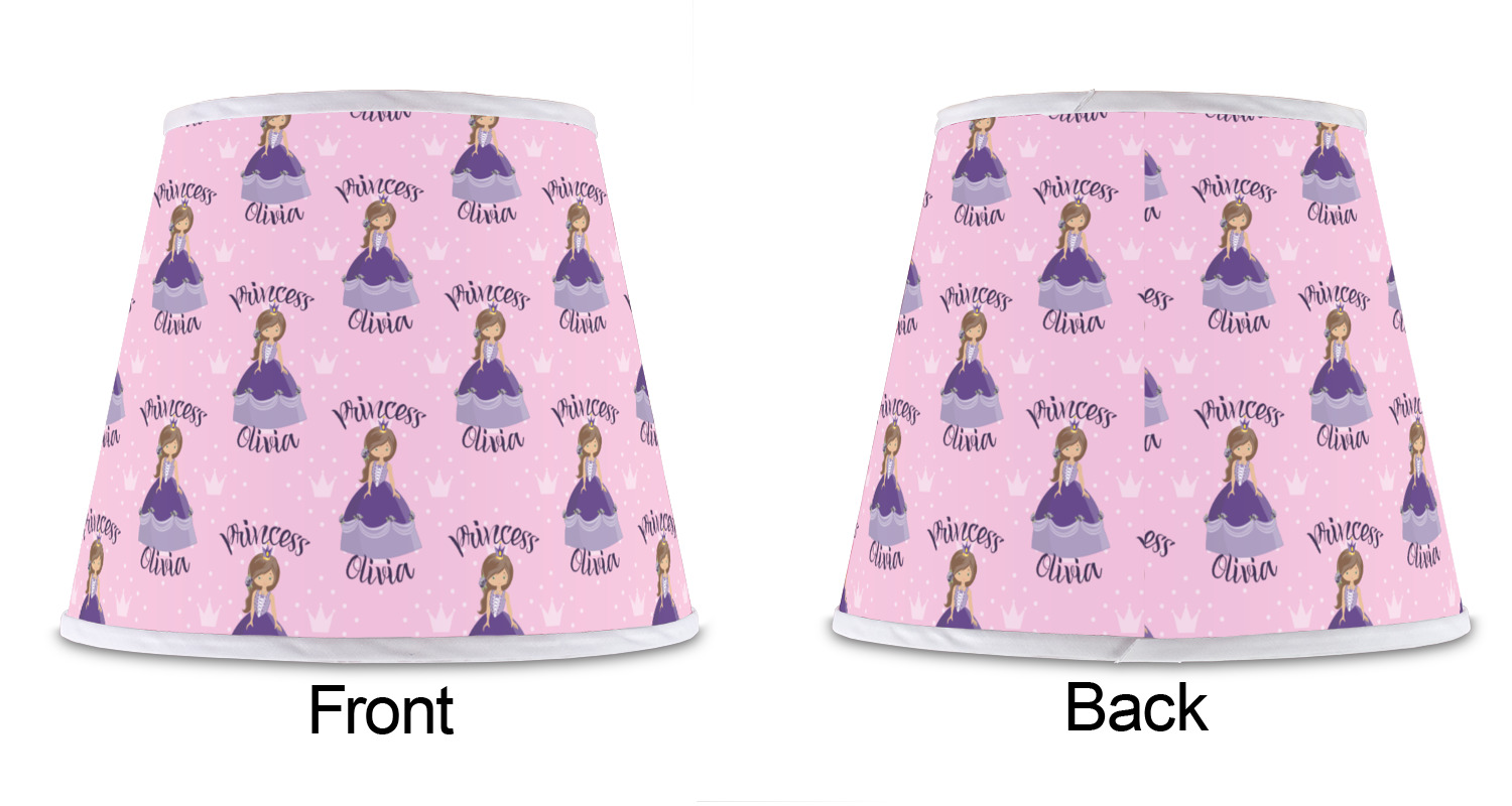 The base of this lampshade is 12 inches in diameter, and the top spans 8 inches in diameter. The total height of the lampshade is 10 inches. The angled nature of this custom lampshade concentrates the light, making it ideal for smaller spaces. This lampshade is made of matte, polyfilm, and displays your customization in its middle. The top and bottom of this colorful lamp shade are lined with a white fabric ribbon (which can be replaced with black inside the design studio) which frames your design and creates a sophisticated finish. As an UNO fitter lampshade, this unique lamp shade will fit a variety of bases.
