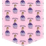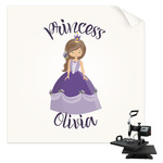 This is truly custom personalized design. You can customize almost all aspects of the design. You can customize the top and bottom text, along with the font and color. The princess' hair color, skin color, eye and even her crown and dress color can be customized. We also have a number of other princesses in our system, so you can always change out the princess. The background pattern and color customizable.