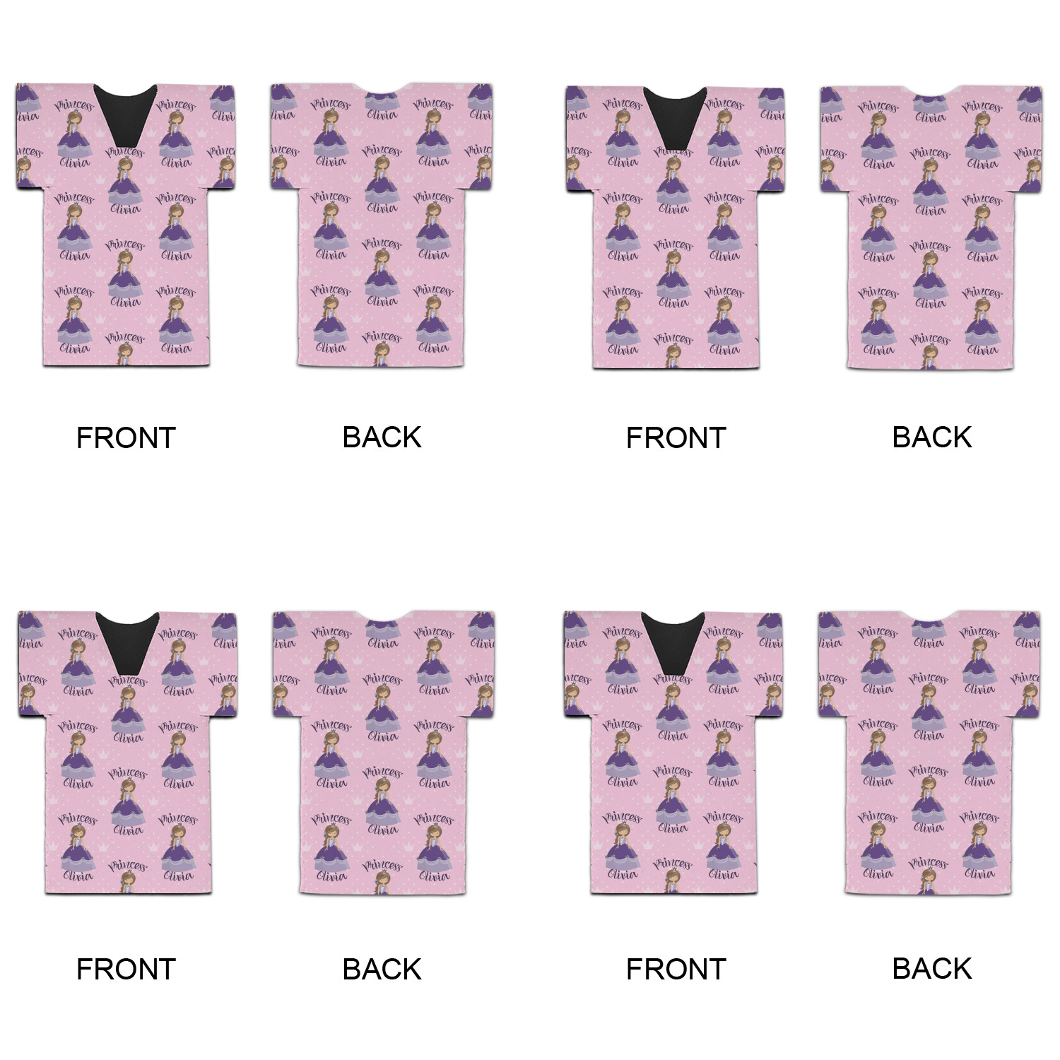 This is truly custom personalized design. You can customize almost all aspects of the design. You can customize the top and bottom text, along with the font and color. The princess' hair color, skin color, eye and even her crown and dress color can be customized. We also have a number of other princesses in our system, so you can always change out the princess. The background pattern and color customizable.