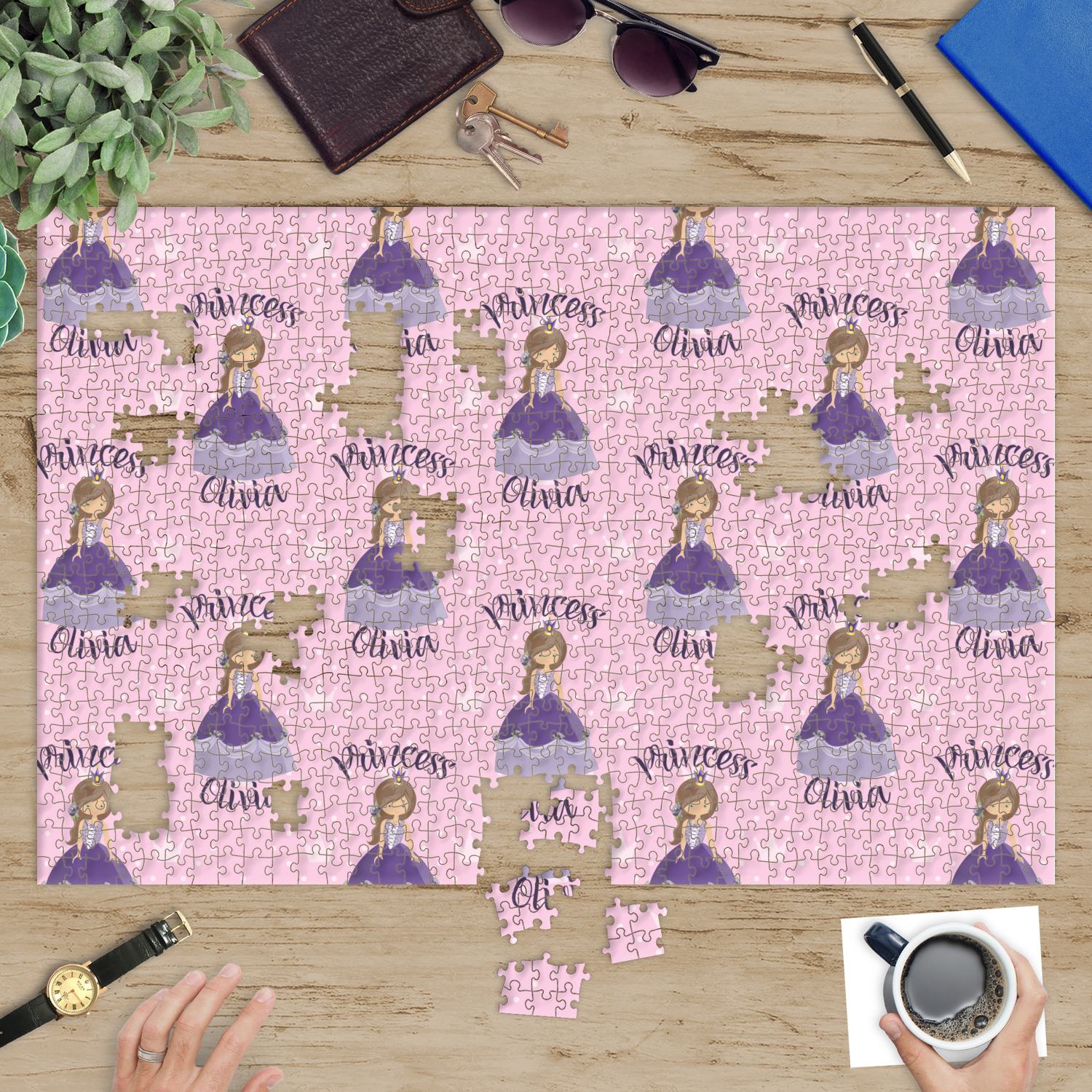 At YouCustomizeIt.com, you get to decide what you want on your puzzle. A scenic picture, a family photo, framed photo, photo with text, artwork, logo, patterns etc. You decide what you want.