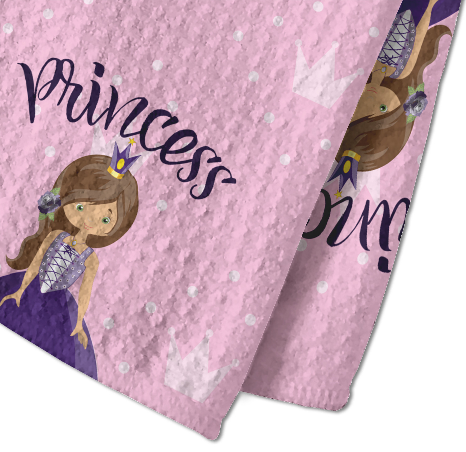 What a fantastic personalized princess design. We have created layered design using our simple crowns and dots design. We then layered it with a graphic of a princess along with the works princess on top and name below the graphic. This graphic, along with the text then form the repeat for the design.
