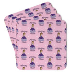 This is truly custom personalized design. You can customize almost all aspects of the design. You can customize the top and bottom text, along with the font and color. The princess' hair color, skin color, eye and even her crown and dress color can be customized. We also have a number of other princesses in our system, so you can always change out the princess. The background pattern and color customizable.