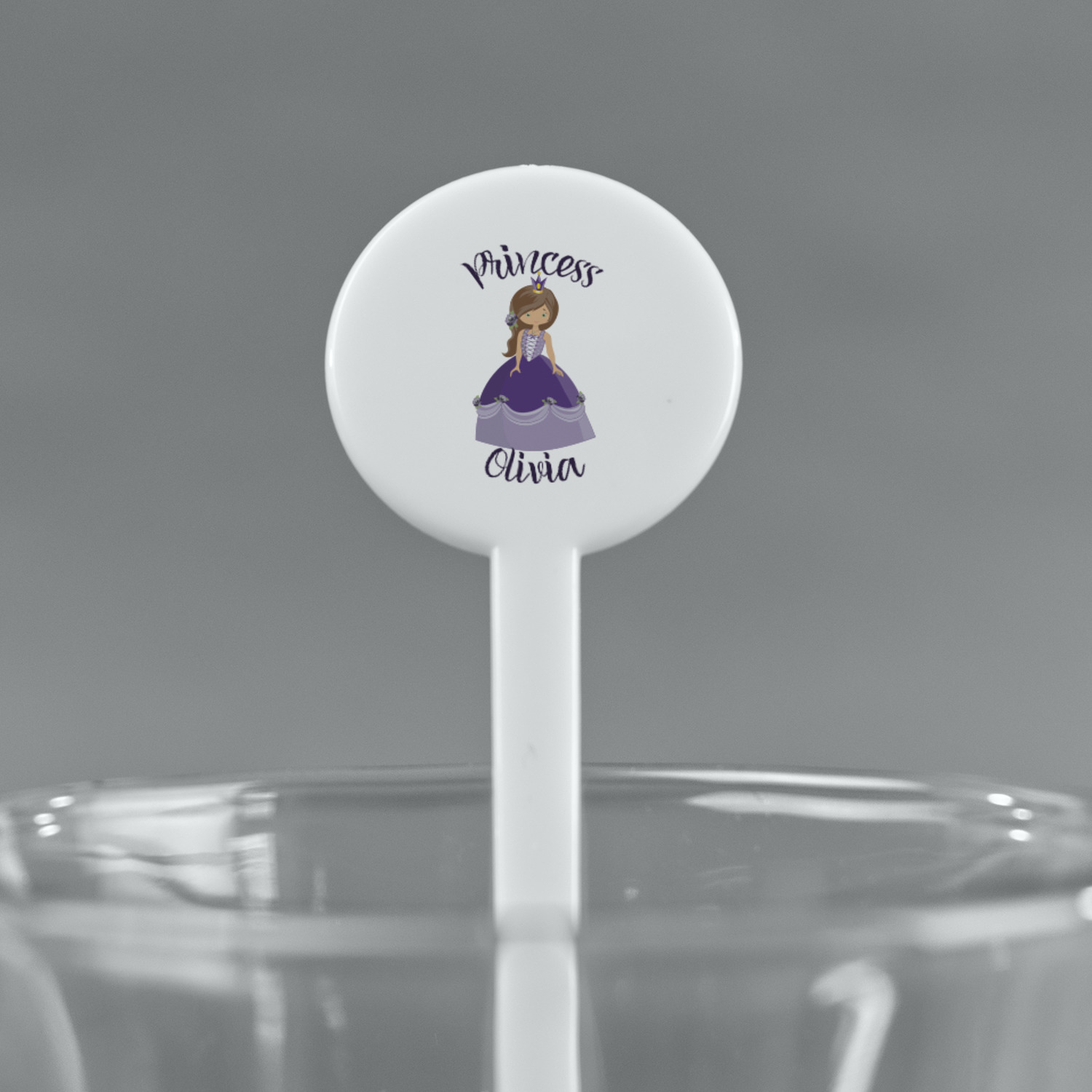 This is truly custom personalized design. You can customize almost all aspects of the design. You can customize the top and bottom text, along with the font and color. The princess' hair color, skin color, eye and even her crown and dress color can be customized. We also have a number of other princesses in our system, so you can always change out the princess. The background pattern and color customizable.