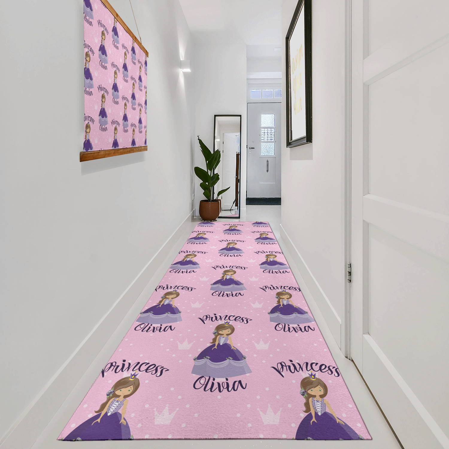 Our custom runner rugs and area rugsare both velvety soft and smooth, with a short pile, beautiful sewn corners and edges on the poly chenille face. We recommend adding an anti-slip mat under your runner rug to prevent it from sliding when under foot when placed on hard or smooth surfaces.