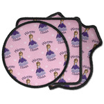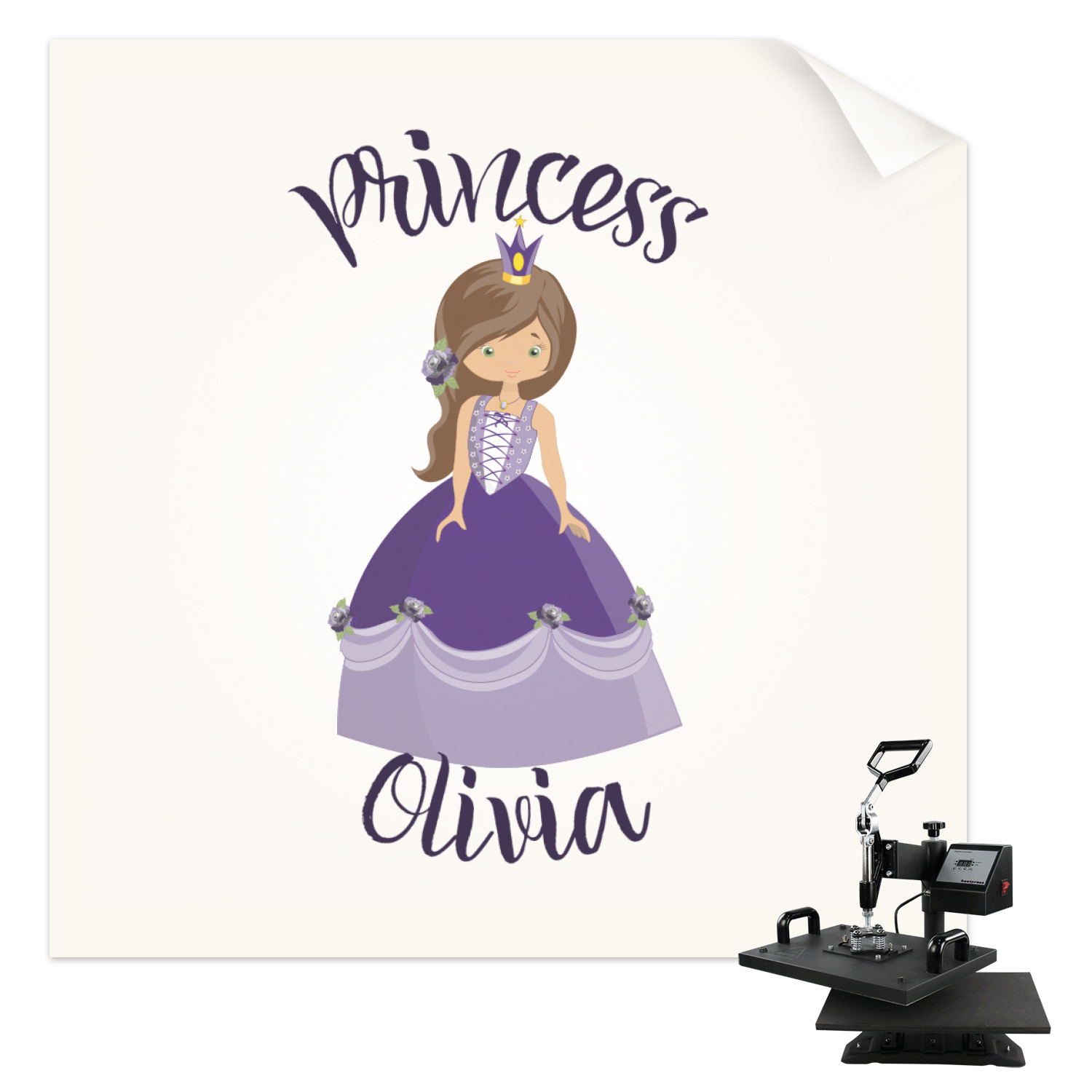 This is truly custom personalized design. You can customize almost all aspects of the design. You can customize the top and bottom text, along with the font and color. The princess' hair color, skin color, eye and even her crown and dress color can be customized. We also have a number of other princesses in our system, so you can always change out the princess. The background pattern and color customizable.