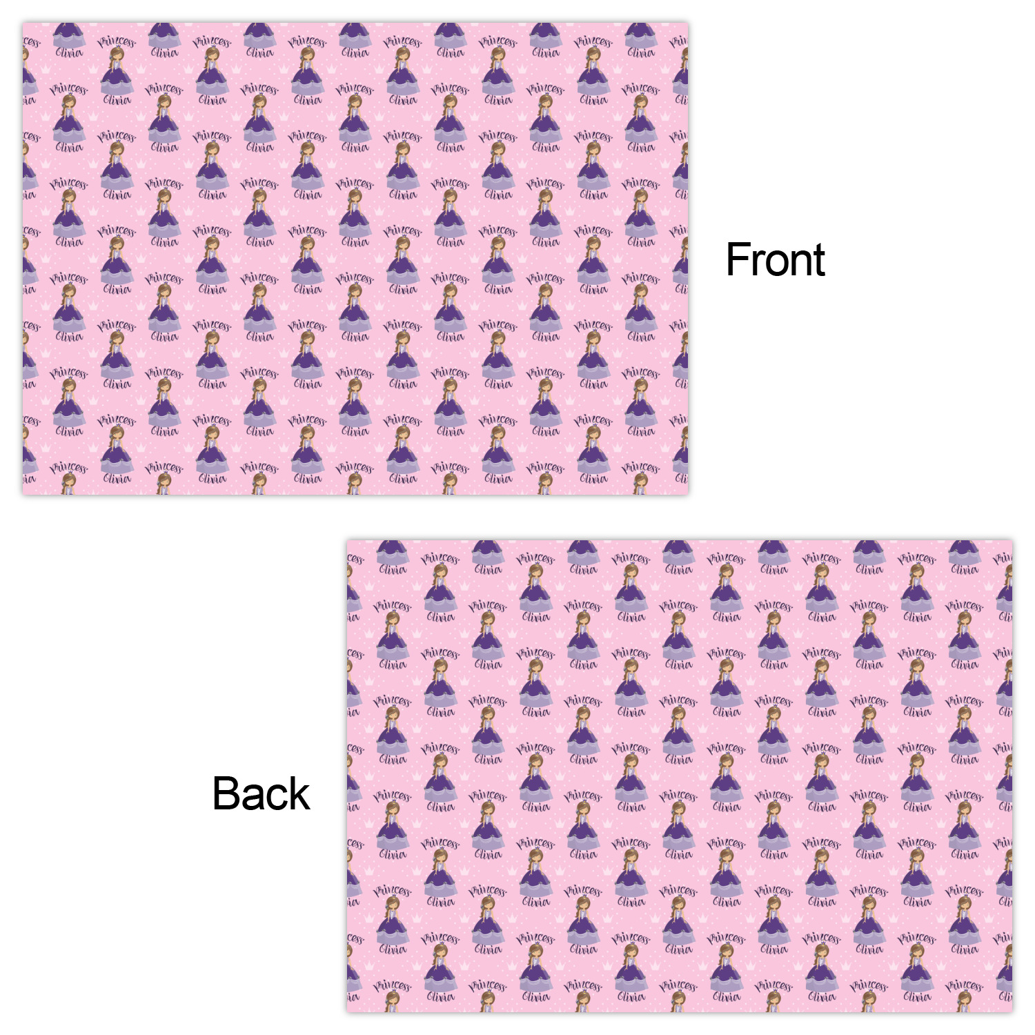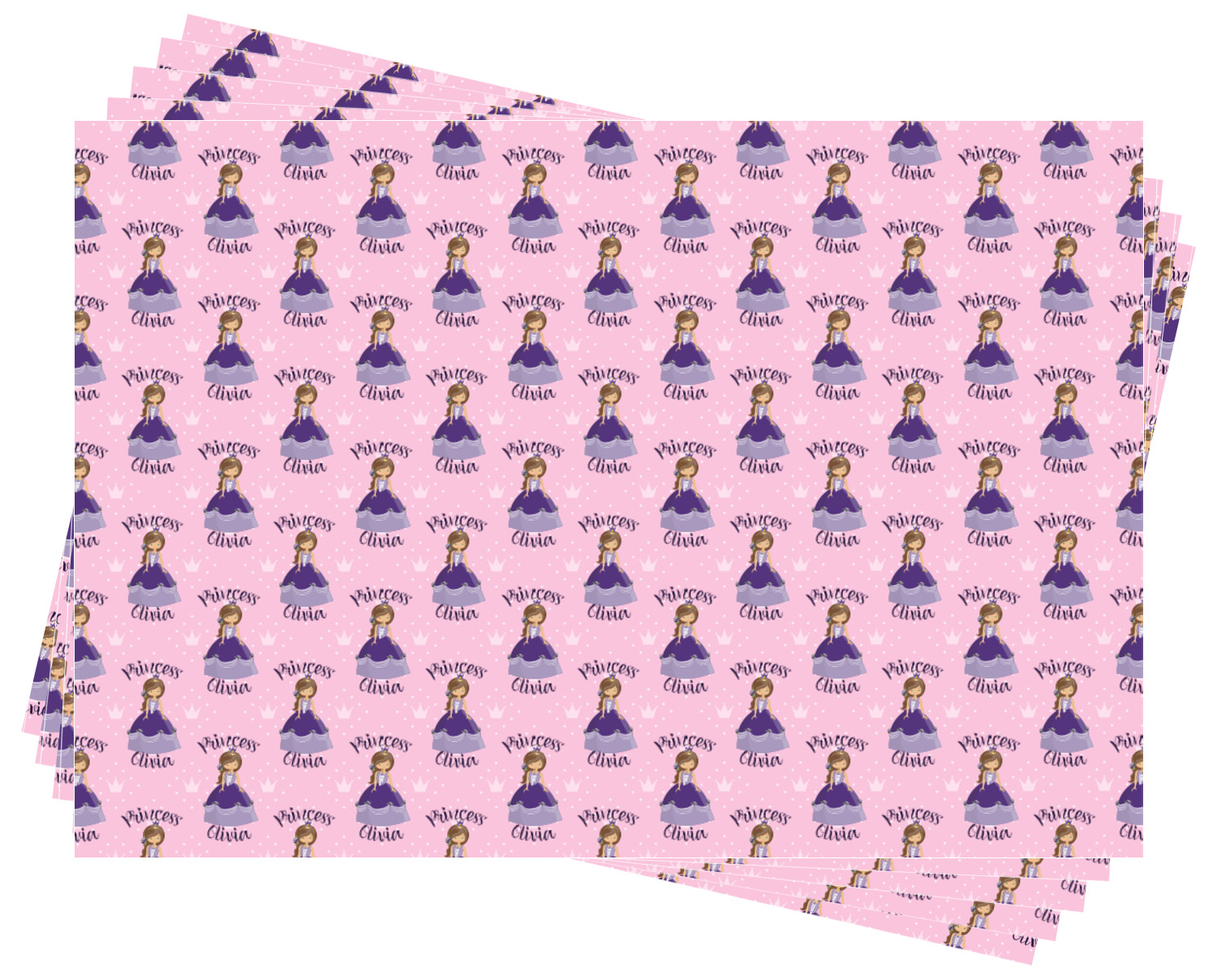 What a fantastic personalized princess design. We have created layered design using our simple crowns and dots design. We then layered it with a graphic of a princess along with the works princess on top and name below the graphic. This graphic, along with the text then form the repeat for the design.