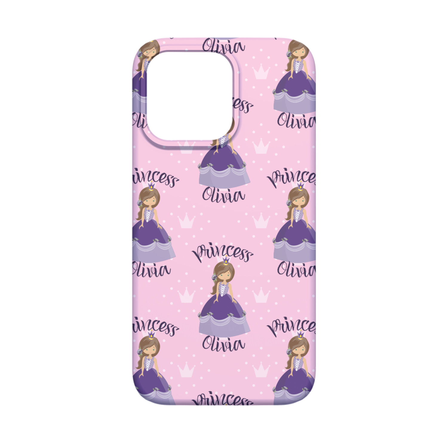 This is truly custom personalized design. You can customize almost all aspects of the design. You can customize the top and bottom text, along with the font and color. The princess' hair color, skin color, eye and even her crown and dress color can be customized. We also have a number of other princesses in our system, so you can always change out the princess. The background pattern and color customizable.
