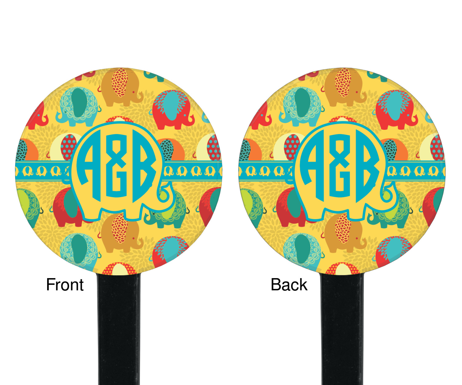 We created a ribbon & label just for this design with the adorable elephants and used them both and coordinated with teal. For the personalization, we chose the round monogram as we thought it looked adorable with the cute elephant label.