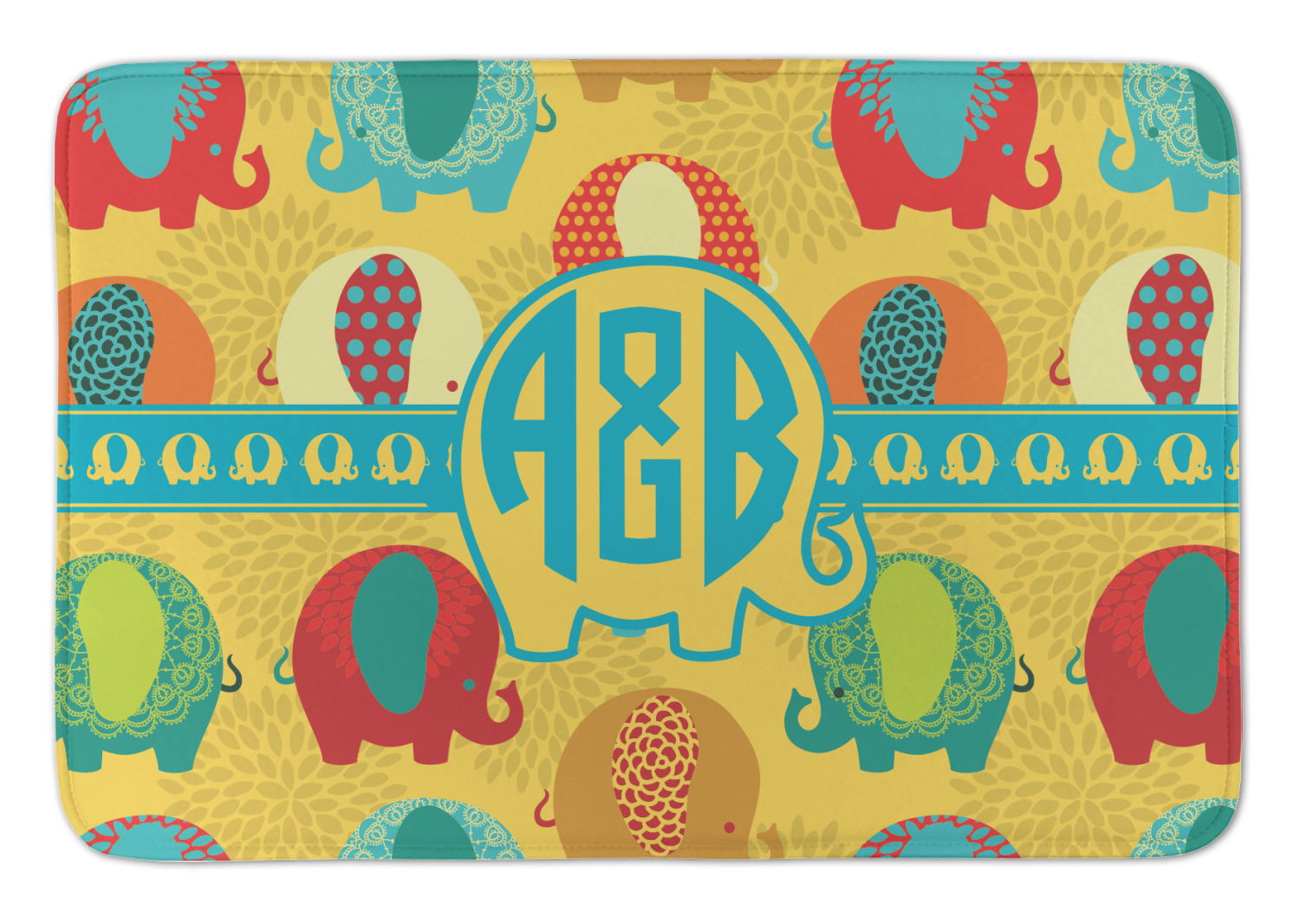 We have many different elephant design for you to chose from and if you are looking for something cute and adorable, then this is the design for you. This cute elephants design is absolutely the most adorable design. It has cute & pudgy elephants in different colors on a tone on tone background on mum flowers. The background color is re-color-able - and we chose to use the yellow African safari color.