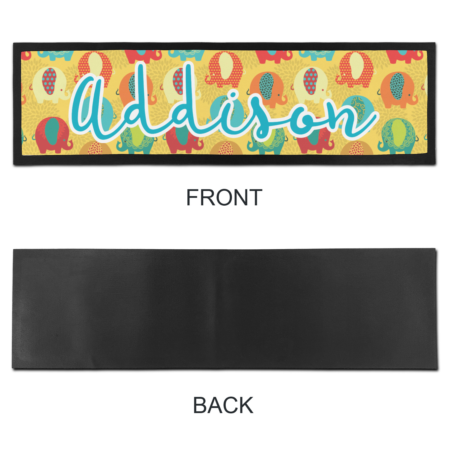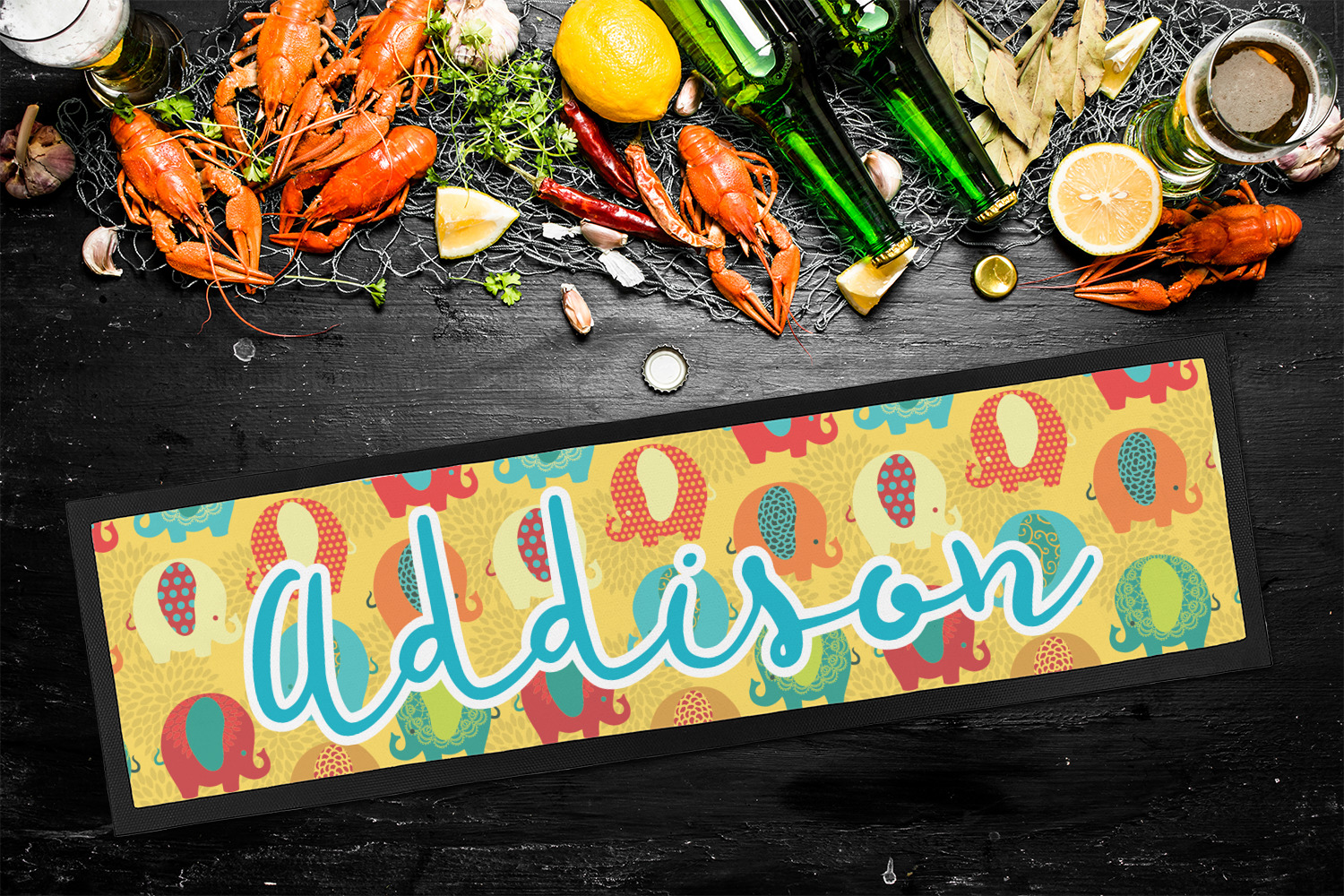 We created a ribbon & label just for this design with the adorable elephants and used them both and coordinated with teal. For the personalization, we chose the round monogram as we thought it looked adorable with the cute elephant label.