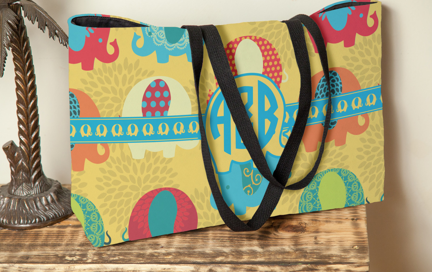 These beach totes are handmade here in the USA. Fabric is printed with your design. The tote is then sewn from the fabric pieces, lining and handles added.